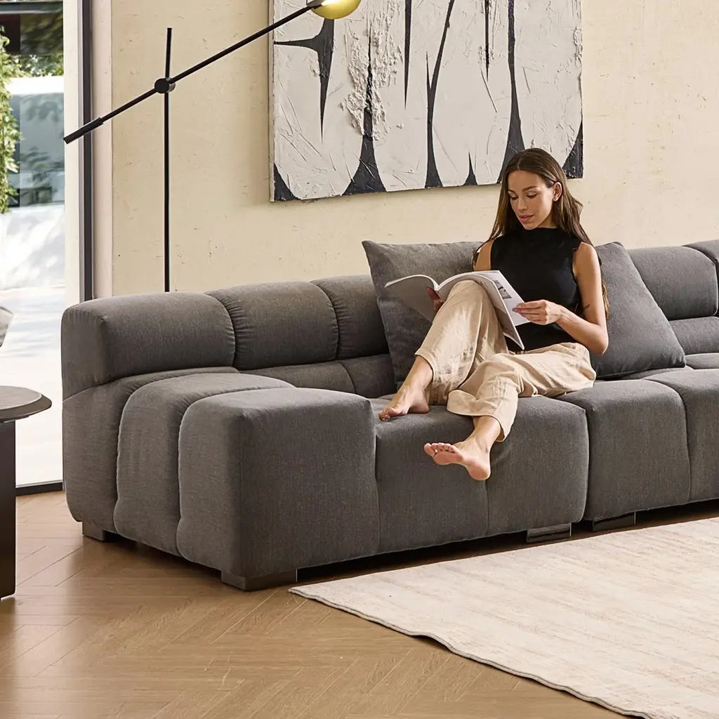 Sink into the Soft, Square Cushions The Amora Sofa is known for super cozy cushions and is the epitome of comfort and relaxation. With its plush, square-shaped cushions, this sectional provides a cozy seating experience that envelops you in softness. Whether you're lounging with a book or enjoying a movie night with loved ones, the Amora Sectional's inviting design and sumptuous cushions make it the perfect centerpiece for any living space. Mess-Free Seating Crafted with meticulous attention to detail, this sectional is designed to withstand everyday spills and mishaps, making it a perfect choice for busy households or those with young children or pets. With its stain-resistant fabric, you can relax and enjoy the comfort of the Amora Sectional without worrying about unsightly stains or spending hours on cleaning and maintenance. Built to Outlast Crafted with meticulous attention to detail, this sofa boasts a sturdy frame constructed from high-quality materials, ensuring it withstands the test of time. Its resilient upholstery is not only aesthetically pleasing but also engineered to resist stains, scratches, and general wear and tear. With a design that seamlessly blends elegance and endurance, the Amora Sofa is the perfect centerpiece for any living space, promising long-lasting comfort and beauty for years to come.