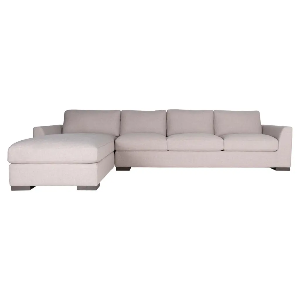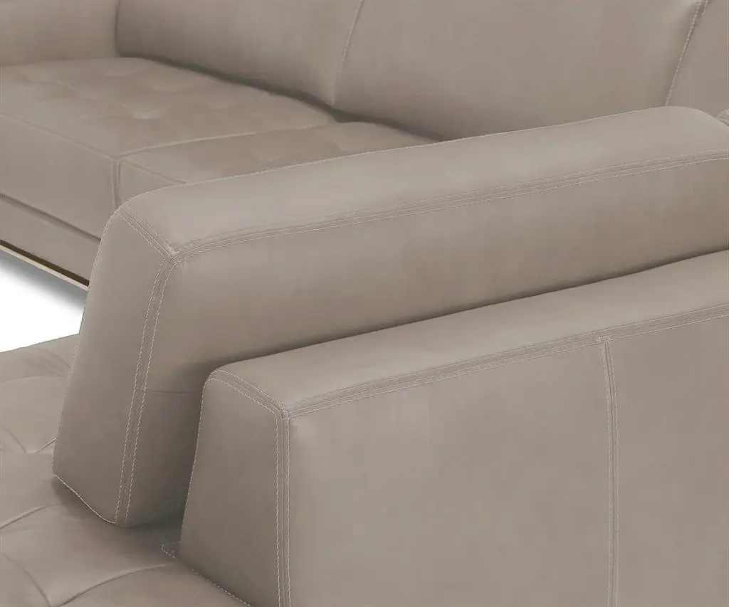 The low-profile Andreas Sectional is big on comfort. Featuring exceptional quality, this modern sectional, complete with wide track arms, is handsomely tailored in leather with stylish contrasting stitch. Finishing details include tufted seat cushions and a wood base with metal trim. Add this sectional to your home and enjoy plenty of room to spread out and relax.