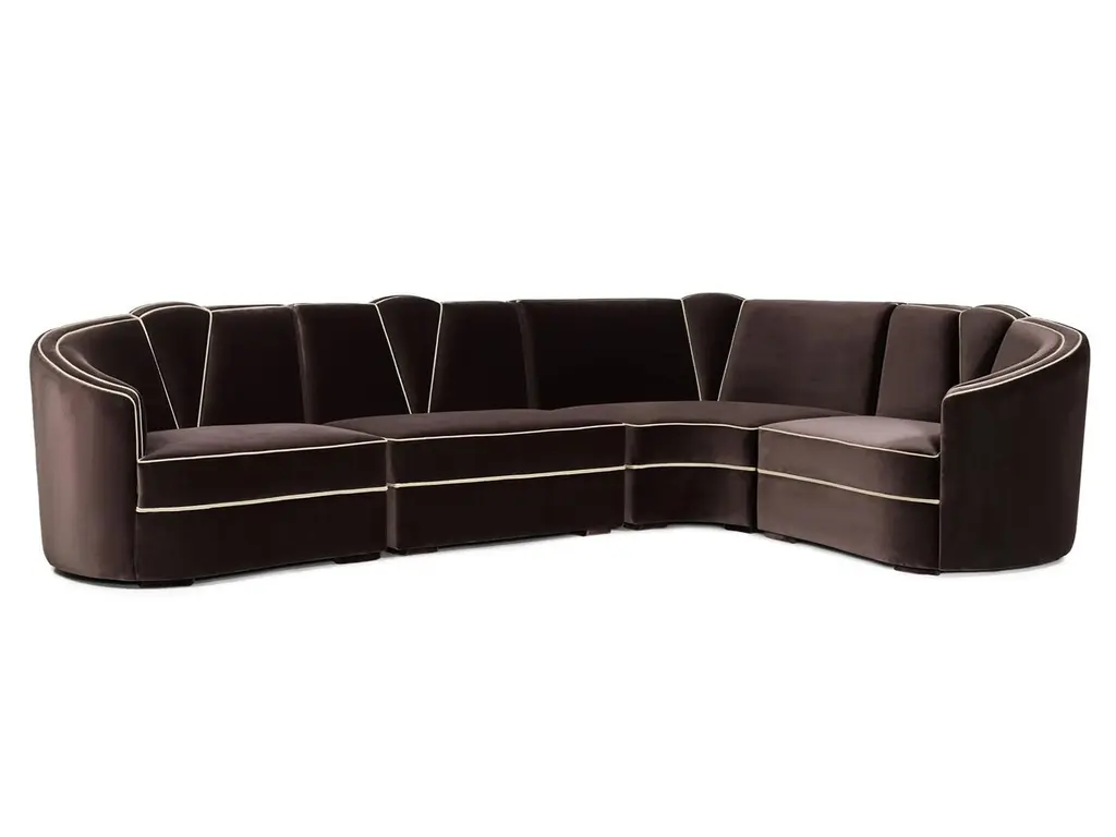 Inspired by the timeless elegance of the Art Deco era, the Josephine Sofa showcases a graceful fan-shaped motif with flowing curves and a luxurious, opulent finish. Its sculptural silhouette is beautifully highlighted by contrasting tonal piping, adding a touch of refined detail. Now avaiable as a modular design, the Josephine can be effortlessly adapted to suit any space. With four versatile module sizes, it offers endless possibilities for creating bespoke seating compositions tailored to your interior.Upholstery: velvet Feet: Upholstered with velvetHandmade in Europe.Our pricing includes all costs for international shipping to the U.S., as well as duties and customs clearance fees. Please be aware that local delivery within the U.S. is not included. We offer white glove, front door, and warehouse delivery options. For shipments outside the U.S., kindly reach out to us for a detailed quote.