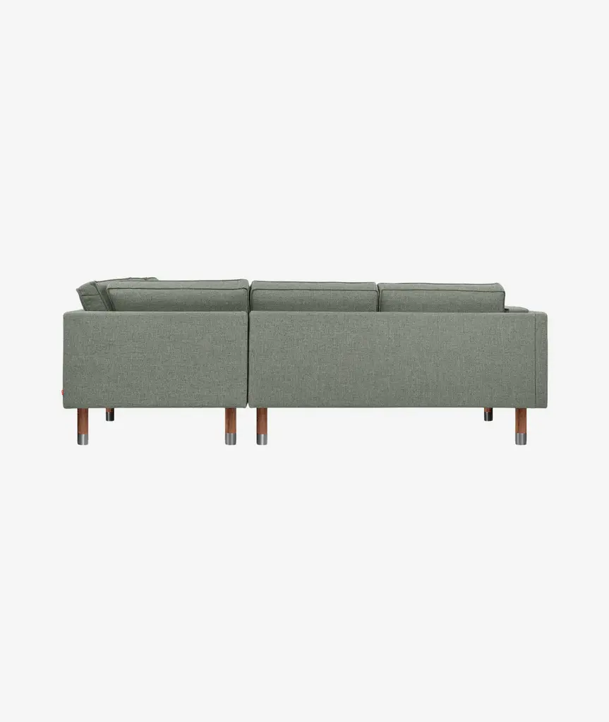 The Augusta is a meticulously designed corner sectional that nods to classic Modernist archetypes while looking to the next Mid-century with fresh details, finishes and sustainable materials. Structured cushions, with French-seam detailing, provide comfort and reinforce the pedigreed style. Solid wood legs include a metal detail to add understated sophistication to the design. Augusta’s frame and legs are constructed with durable, kiln-dried FSC®-Certified hardwood, in support of responsible forest management.
