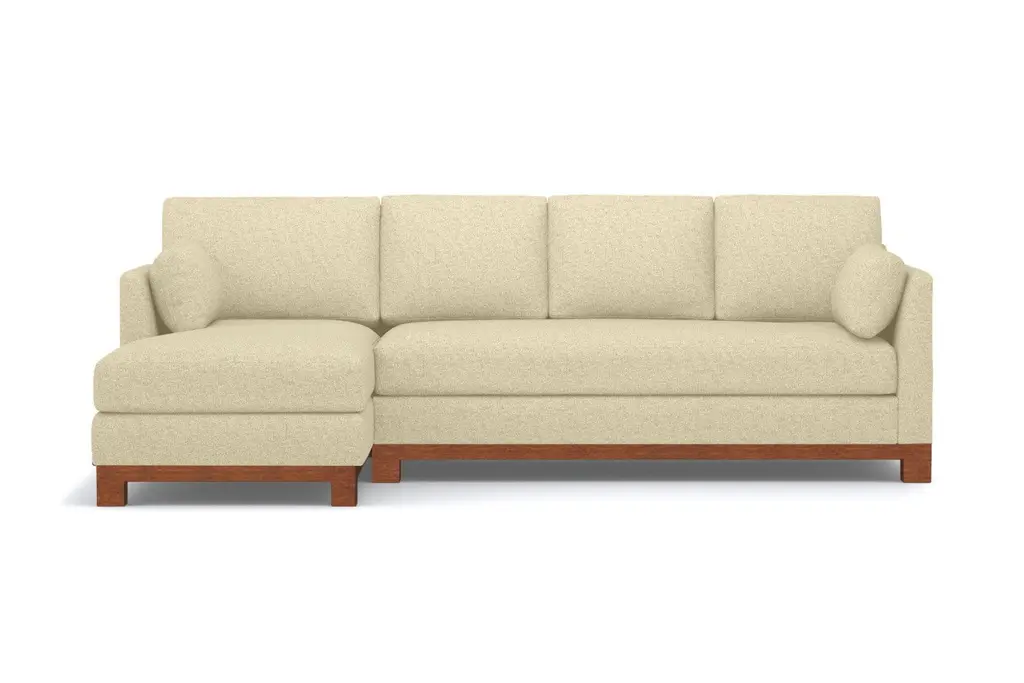 Avalon is another word for paradise. And once you sit on the Avalon 2-Piece Sectional Sofa, you'll instantly understand why. It's downright beautiful with its classic lines and elevated features. The Avalon adds an elegant touch to any room, but it doesn’t sacrifice comfort in the name of style. In fact, it’s one of our coziest couches and perfect for everything from entertaining guests to watching your favorite movies. This Avalon sectional boasts some truly special details that shouldn’t be overlooked. It has a solid wood base that wraps around the entire couch, giving it a high-end look (without a high-end price tag). It also has a sleek bench cushion and side cushions for extra padding next to the armrests. You'd be hard-pressed to find a sectional sofa with even half the glamour as the Avalon. It's truly in a class all its own. Many couches with a chaise do not have the high-end style and overall appeal of the Avalon. It can be upholstered in any of Apt2B's pet-friendly and kid-friendly fabrics. It comes in over 50 stunning colors across different fabric options like microfiber and performance velvet. Can’t decide which one is right for your home? Order free fabric swatches to see how your top contenders compare. You’ll also be able to customize the leg finish and choose whether the chaise is positioned on the right or left side. The Avalon, like all Apt2B sofas, is built to order in our downtown Los Angeles factory (made in the USA!). It comes with a limited lifetime warranty and our 100-day satisfaction guarantee. Whether you live in a Chicago walk-up or a Beverly Hills McMansion, the Avalon Sectional Sofa is everything you'll ever need.