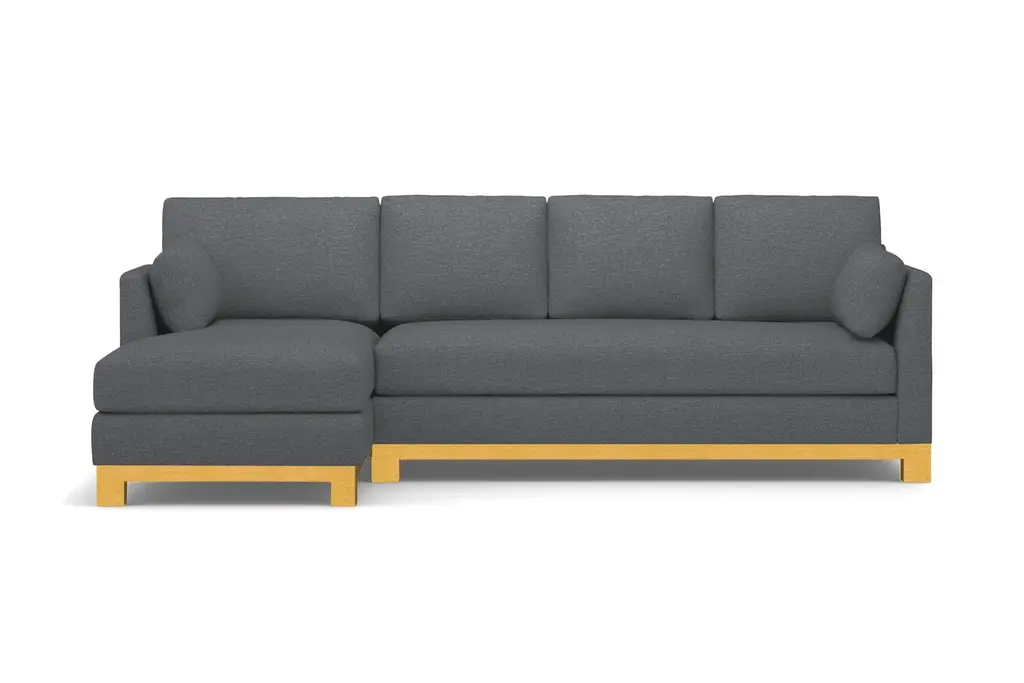 Avalon is another word for paradise. And once you sit on the Avalon 2-Piece Sectional Sofa, you'll instantly understand why. It's downright beautiful with its classic lines and elevated features. The Avalon adds an elegant touch to any room, but it doesn’t sacrifice comfort in the name of style. In fact, it’s one of our coziest couches and perfect for everything from entertaining guests to watching your favorite movies. This Avalon sectional boasts some truly special details that shouldn’t be overlooked. It has a solid wood base that wraps around the entire couch, giving it a high-end look (without a high-end price tag). It also has a sleek bench cushion and side cushions for extra padding next to the armrests. You'd be hard-pressed to find a sectional sofa with even half the glamour as the Avalon. It's truly in a class all its own. Many couches with a chaise do not have the high-end style and overall appeal of the Avalon. It can be upholstered in any of Apt2B's pet-friendly and kid-friendly fabrics. It comes in over 50 stunning colors across different fabric options like microfiber and performance velvet. Can’t decide which one is right for your home? Order free fabric swatches to see how your top contenders compare. You’ll also be able to customize the leg finish and choose whether the chaise is positioned on the right or left side. The Avalon, like all Apt2B sofas, is built to order in our downtown Los Angeles factory (made in the USA!). It comes with a limited lifetime warranty and our 100-day satisfaction guarantee. Whether you live in a Chicago walk-up or a Beverly Hills McMansion, the Avalon Sectional Sofa is everything you'll ever need.