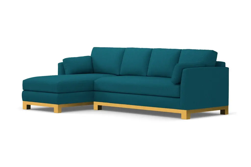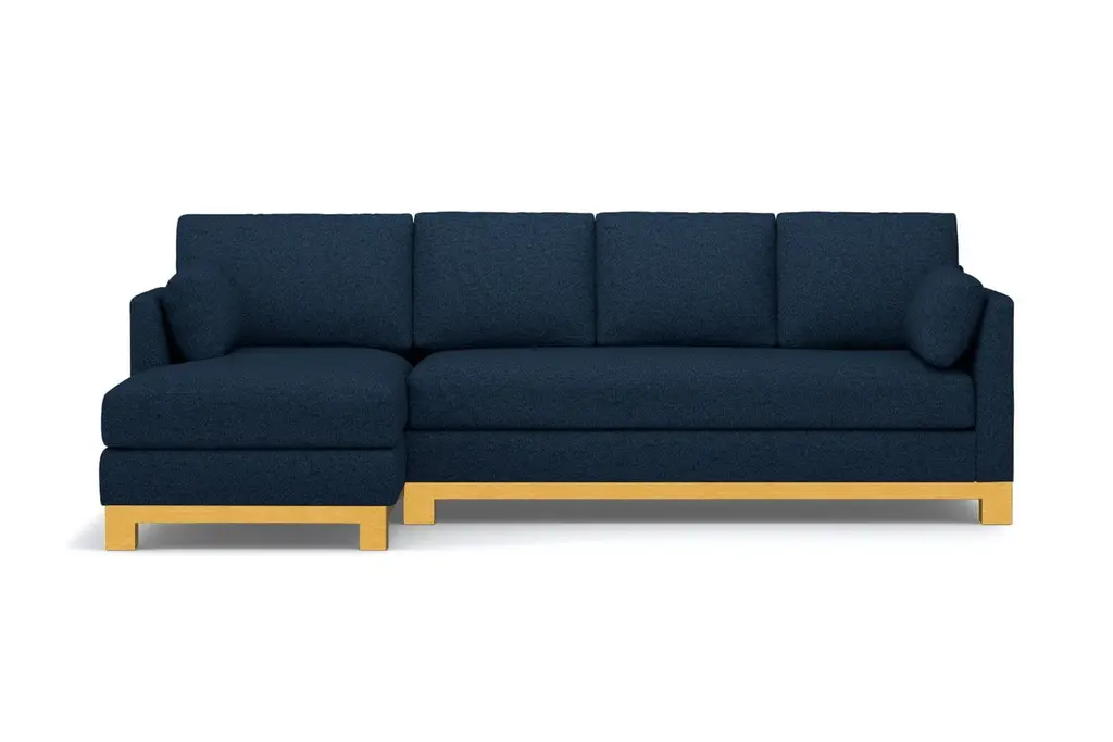 Avalon is another word for paradise. And once you sit on the Avalon 2-Piece Sectional Sofa, you'll instantly understand why. It's downright beautiful with its classic lines and elevated features. The Avalon adds an elegant touch to any room, but it doesn’t sacrifice comfort in the name of style. In fact, it’s one of our coziest couches and perfect for everything from entertaining guests to watching your favorite movies. This Avalon sectional boasts some truly special details that shouldn’t be overlooked. It has a solid wood base that wraps around the entire couch, giving it a high-end look (without a high-end price tag). It also has a sleek bench cushion and side cushions for extra padding next to the armrests. You'd be hard-pressed to find a sectional sofa with even half the glamour as the Avalon. It's truly in a class all its own. Many couches with a chaise do not have the high-end style and overall appeal of the Avalon. It can be upholstered in any of Apt2B's pet-friendly and kid-friendly fabrics. It comes in over 50 stunning colors across different fabric options like microfiber and performance velvet. Can’t decide which one is right for your home? Order free fabric swatches to see how your top contenders compare. You’ll also be able to customize the leg finish and choose whether the chaise is positioned on the right or left side.  The Avalon, like all Apt2B sofas, is built to order in our downtown Los Angeles factory (made in the USA!). It comes with a limited lifetime warranty and our 100-day satisfaction guarantee. Whether you live in a Chicago walk-up or a Beverly Hills McMansion, the Avalon Sectional Sofa is everything you'll ever need.