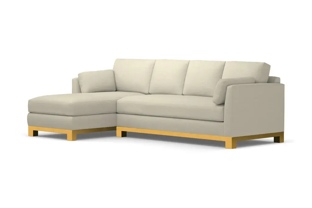 Avalon is another word for paradise. And once you sit on the Avalon 2-Piece Sectional Sofa, you'll instantly understand why. It's downright beautiful with its classic lines and elevated features. The Avalon adds an elegant touch to any room, but it doesn’t sacrifice comfort in the name of style. In fact, it’s one of our coziest couches and perfect for everything from entertaining guests to watching your favorite movies. This Avalon sectional boasts some truly special details that shouldn’t be overlooked. It has a solid wood base that wraps around the entire couch, giving it a high-end look (without a high-end price tag). It also has a sleek bench cushion and side cushions for extra padding next to the armrests. You'd be hard-pressed to find a sectional sofa with even half the glamour as the Avalon. It's truly in a class all its own. Many couches with a chaise do not have the high-end style and overall appeal of the Avalon. It can be upholstered in any of Apt2B's pet-friendly and kid-friendly fabrics. It comes in over 50 stunning colors across different fabric options like microfiber and performance velvet. Can’t decide which one is right for your home? Order free fabric swatches to see how your top contenders compare. You’ll also be able to customize the leg finish and choose whether the chaise is positioned on the right or left side. The Avalon, like all Apt2B sofas, is built to order in our downtown Los Angeles factory (made in the USA!). It comes with a limited lifetime warranty and our 100-day satisfaction guarantee. Whether you live in a Chicago walk-up or a Beverly Hills McMansion, the Avalon Sectional Sofa is everything you'll ever need.