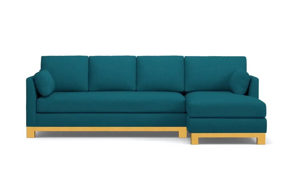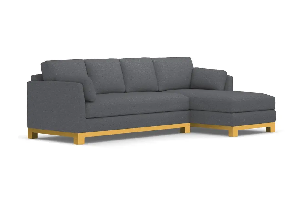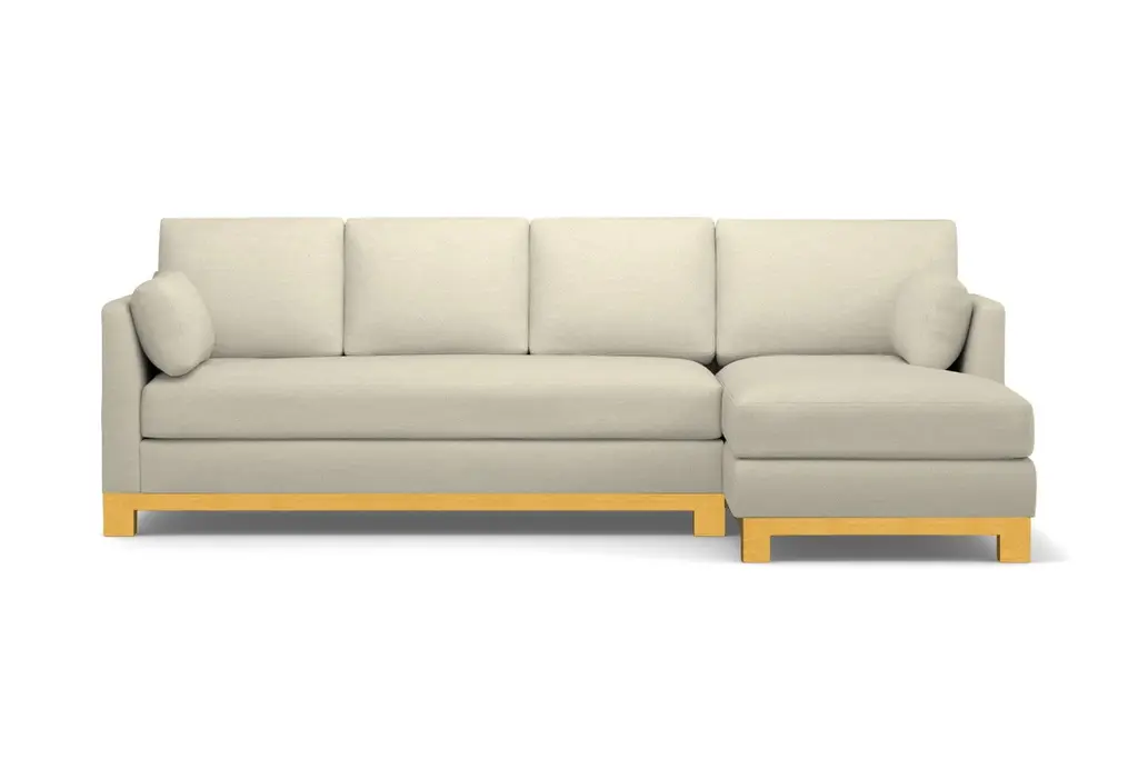 Avalon is another word for paradise. And once you sit on the Avalon 2 Piece Sectional Sofa you'll understand why. It's downright beautiful with its classic lines, solid wood base, and sleek bench cushion. You'd be hard-pressed to find a sectional sofa with even half the glamour as the Avalon. It's truly in a class all its own. Many couches with a chaise do not have the high-end style and overall appeal of the Avalon. The Avalon, like all Apt2B sofas, is built to order in our downtown Los Angeles factory (made in the USA!) and it can be upholstered in any of Apt2B's pet friendly and kid friendly fabrics. Whether you live in a Chicago walk-up or a Beverly Hills McMansion, the Avalon 2 Piece Sectional Sofa is everything you'll ever need.