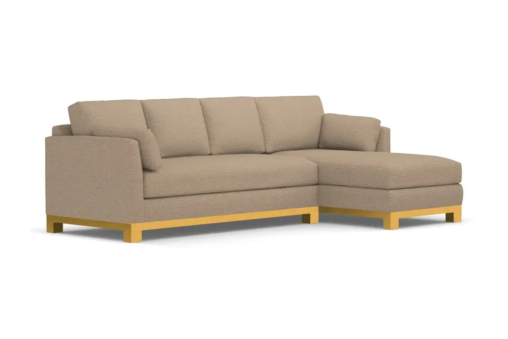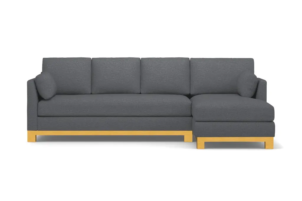 Avalon is another word for paradise. And once you sit on the Avalon 2 Piece Sectional Sofa you'll understand why. It's downright beautiful with its classic lines, solid wood base, and sleek bench cushion. You'd be hard-pressed to find a sectional sofa with even half the glamour as the Avalon. It's truly in a class all its own. Many couches with a chaise do not have the high-end style and overall appeal of the Avalon. The Avalon, like all Apt2B sofas, is built to order in our downtown Los Angeles factory (made in the USA!) and it can be upholstered in any of Apt2B's pet friendly and kid friendly fabrics. Whether you live in a Chicago walk-up or a Beverly Hills McMansion, the Avalon 2 Piece Sectional Sofa is everything you'll ever need.
