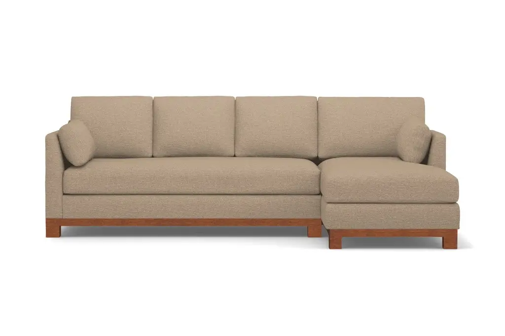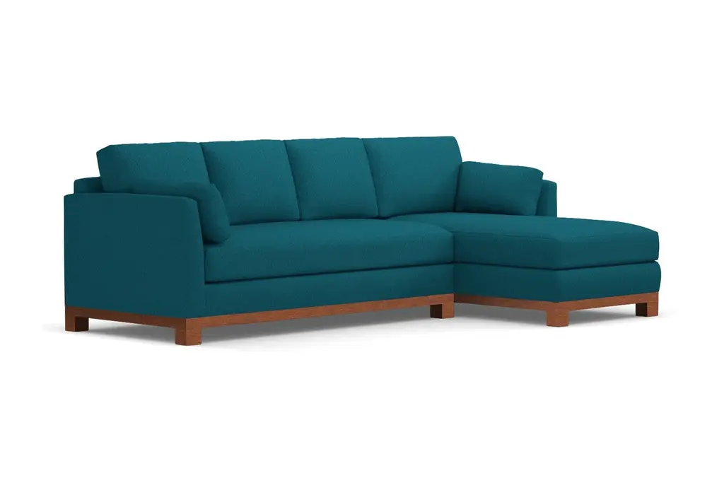 Avalon is another word for paradise. And once you sit on the Avalon 2 Piece Sectional Sofa you'll understand why. It's downright beautiful with its classic lines, solid wood base, and sleek bench cushion. You'd be hard-pressed to find a sectional sofa with even half the glamour as the Avalon. It's truly in a class all its own. Many couches with a chaise do not have the high-end style and overall appeal of the Avalon. The Avalon, like all Apt2B sofas, is built to order in our downtown Los Angeles factory (made in the USA!) and it can be upholstered in any of Apt2B's pet friendly and kid friendly fabrics. Whether you live in a Chicago walk-up or a Beverly Hills McMansion, the Avalon 2 Piece Sectional Sofa is everything you'll ever need.