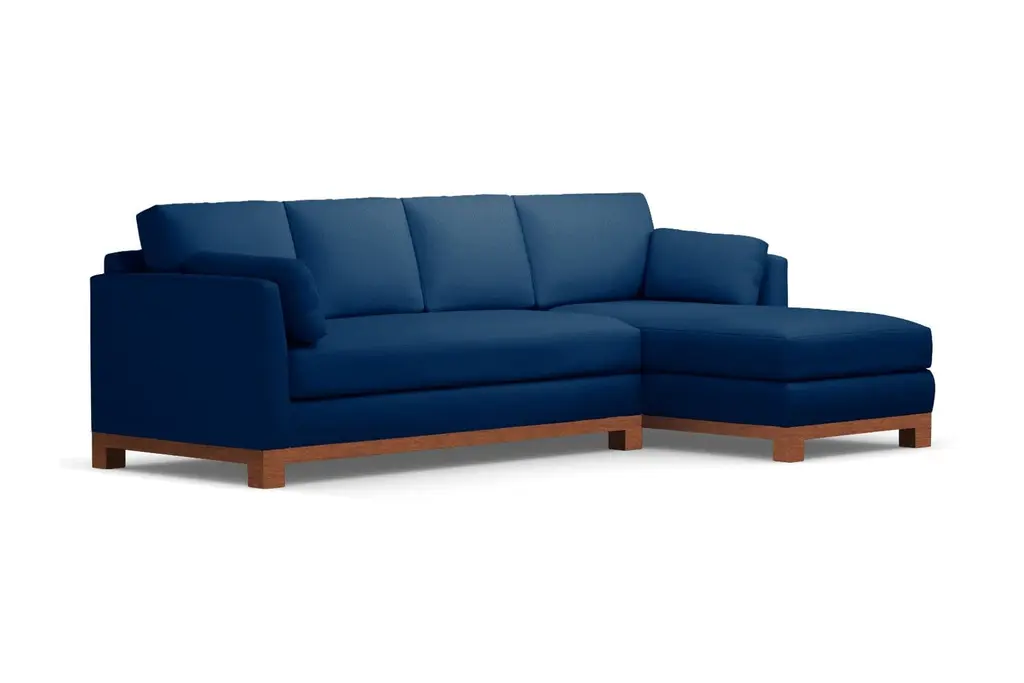 Avalon is another word for paradise. And once you sit on the Avalon 2 Piece Sectional Sofa you'll understand why. It's downright beautiful with its classic lines, solid wood base, and sleek bench cushion. You'd be hard-pressed to find a sectional sofa with even half the glamour as the Avalon. It's truly in a class all its own. Many couches with a chaise do not have the high-end style and overall appeal of the Avalon. The Avalon, like all Apt2B sofas, is built to order in our downtown Los Angeles factory (made in the USA!) and it can be upholstered in any of Apt2B's pet friendly and kid friendly fabrics. Whether you live in a Chicago walk-up or a Beverly Hills McMansion, the Avalon 2 Piece Sectional Sofa is everything you'll ever need.