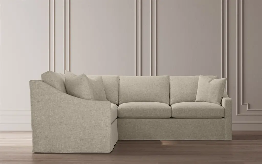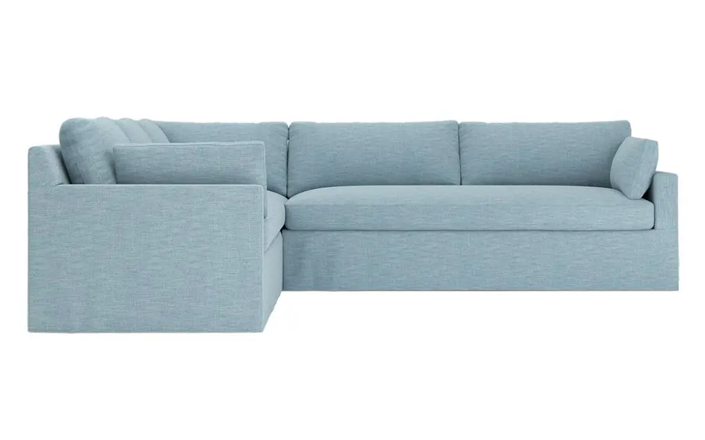 With its relaxed design and generous size, the right 111" Avery slipcovered corner sectional is a welcome addition to any living space. Gently sloped arms and simple lines create a timeless silhouette with effortless versatility. Soft yet supportive with a slightly firm sit, the low-maintenance seat cushions feature a foam core surrounded by plush fiber fill. Cozy throw pillows make for easy lounging. Choose from washable slipcover fabrics in a variety of serene hues.