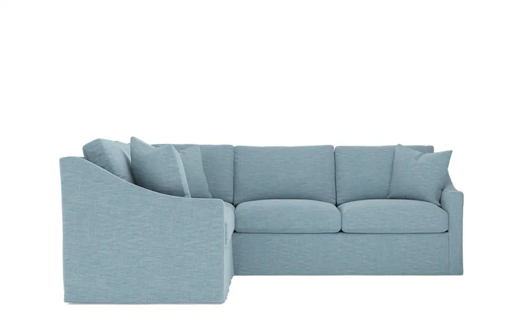 With its relaxed design and generous size, the right 111" Avery slipcovered corner sectional is a welcome addition to any living space. Gently sloped arms and simple lines create a timeless silhouette with effortless versatility. Soft yet supportive with a slightly firm sit, the low-maintenance seat cushions feature a foam core surrounded by plush fiber fill. Cozy throw pillows make for easy lounging. Choose from washable slipcover fabrics in a variety of serene hues.