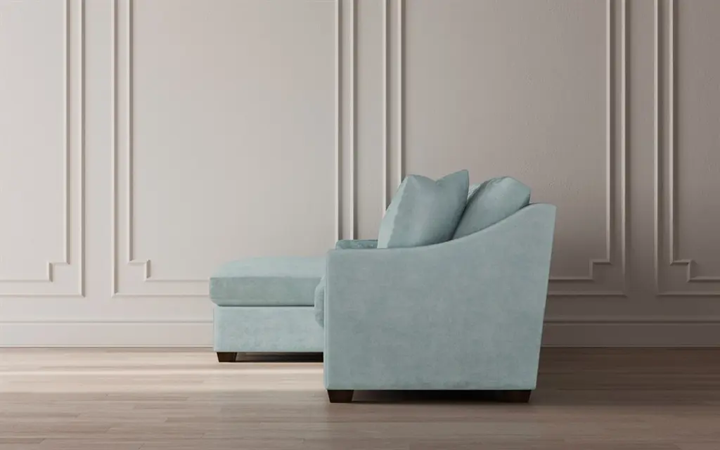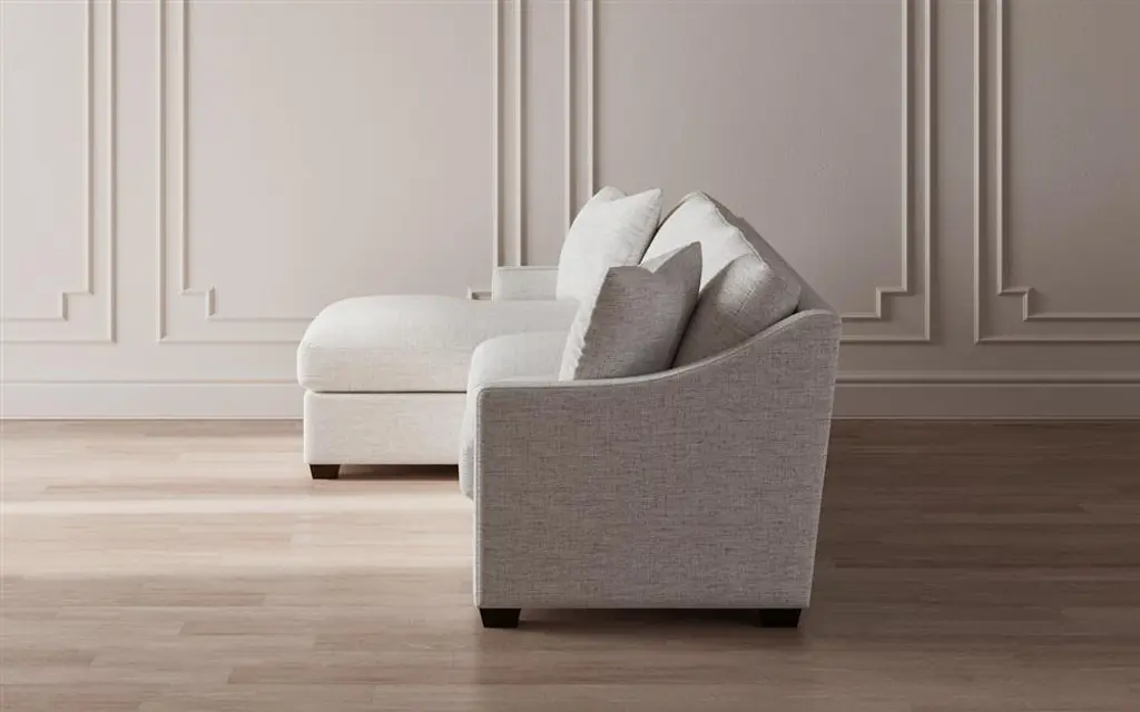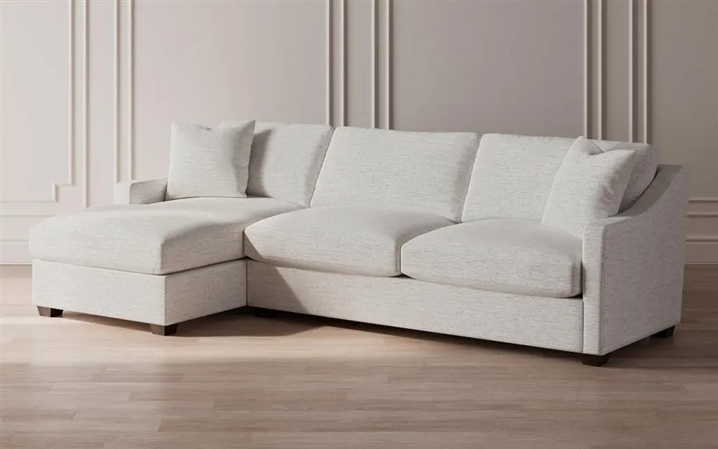 The left 110” Avery chaise sectional offers timeless simplicity and inviting comfort. Designed with tapered wood legs and gently sloped arms, its versatile silhouette pairs beautifully with any living space. Soft yet supportive with a slightly firm sit, the low-maintenance seat cushions feature a foam core surrounded by plush fiber fill. Cozy throw pillows make for easy lounging. Choose from a variety of upholstery options, including linen, velvet, and performance fabrics.