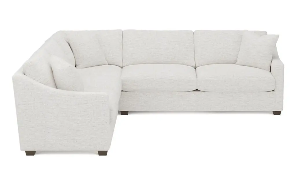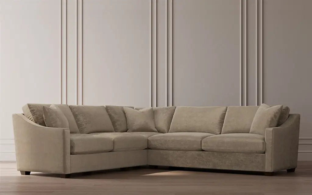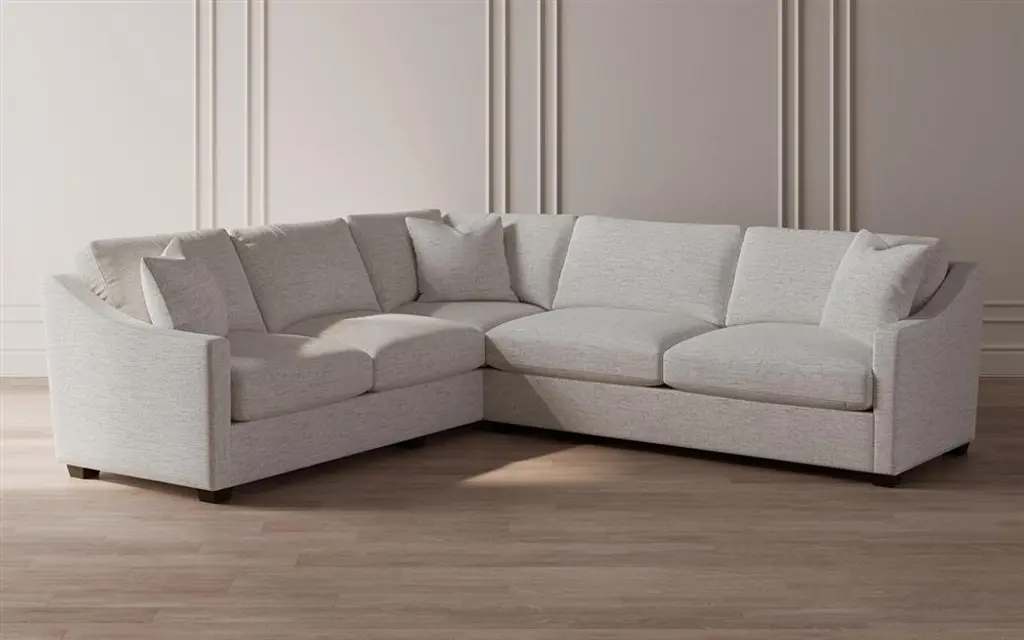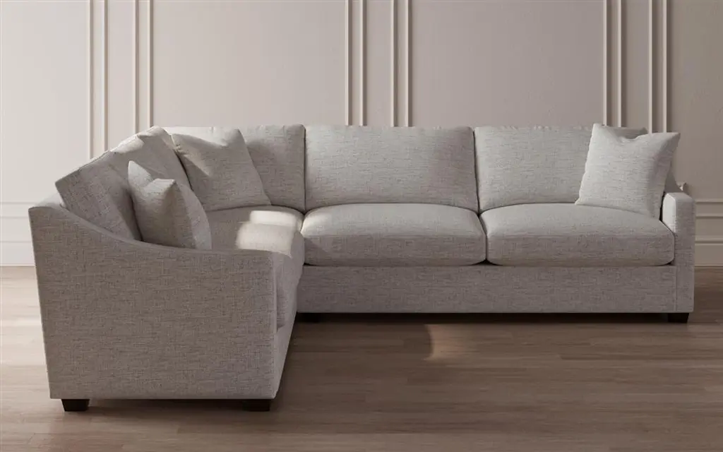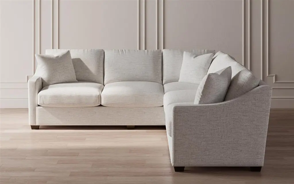 The right 111” Avery corner sectional brings casual comfort and elevated simplicity to any living space. Tapered wood legs ground the frame, while gently sloped arms lend a touch of elegance to the timeless silhouette. Soft yet supportive with a slightly firm sit, the low-maintenance seat cushions feature a foam core surrounded by plush fiber fill. Cozy throw pillows make for easy lounging. Choose from a variety of upholstery options, including linen, velvet, and performance fabrics.