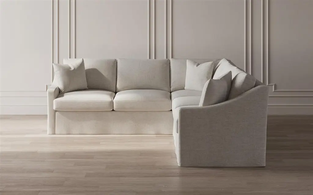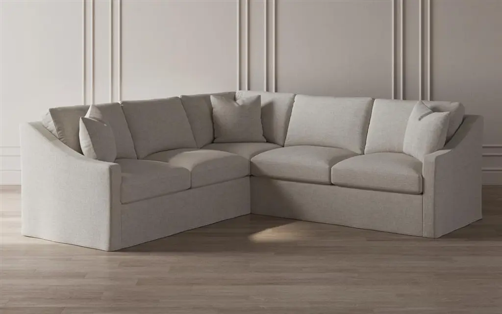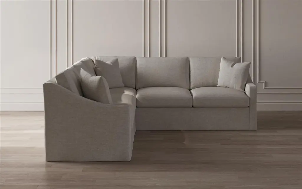 With its relaxed design and generous size, the right 111" Avery slipcovered corner sectional is a welcome addition to any living space. Gently sloped arms and simple lines create a timeless silhouette with effortless versatility. Soft yet supportive with a slightly firm sit, the low-maintenance seat cushions feature a foam core surrounded by plush fiber fill. Cozy throw pillows make for easy lounging. Choose from washable slipcover fabrics in a variety of serene hues.