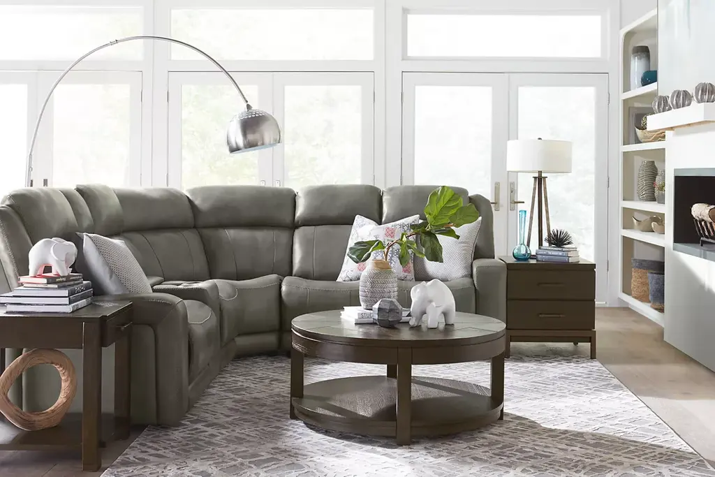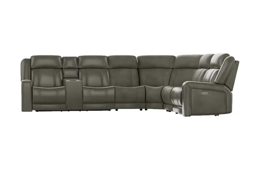 Our tri-power Aviator sectional is everything you want in a seating experience and more. With top-grain, semi-aniline leather with matching vinyl sides, 1.8-density seat cushions, infinite reclining positions, powered headrests, powered footrests and powered lumbar support, this piece is as handsome as it is functional. Recline and relax with a no-sag spring system, track arms and a gorgeous selection of grey, caramel and taupe leather upholsteries. Professional installation recommended.