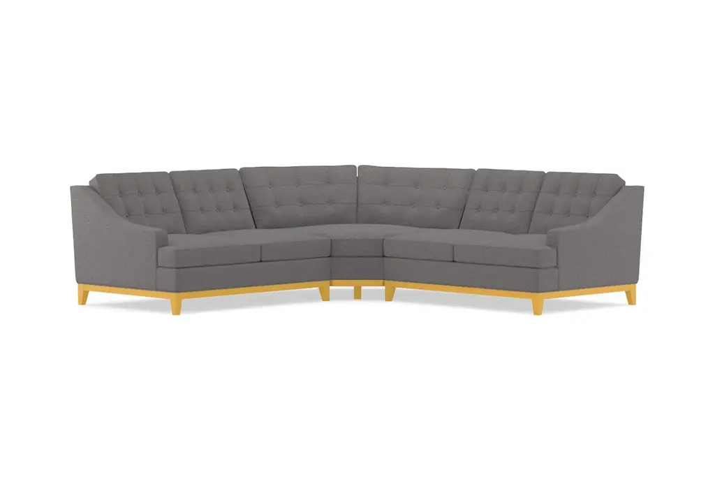 The Bannister 3 Piece Sectional is drop dead gorgeous. It only takes one look at its elegant curves, its sharp button tufting, and its stunning wood base to see that this is a sectional that you simply cannot live without. The Bannister features enough seating for the entire family without sacrificing on its high-end aesthetics.
