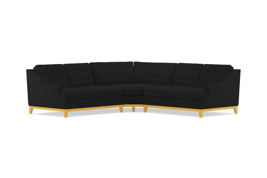 The Bannister 3 Piece Sectional is drop dead gorgeous. It only takes one look at its elegant curves, its sharp button tufting, and its stunning wood base to see that this is a sectional that you simply cannot live without. The Bannister features enough seating for the entire family without sacrificing on its high-end aesthetics.