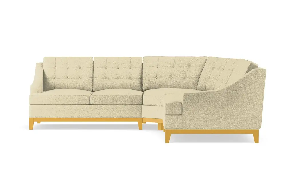 The Bannister 3 Piece Sectional is drop dead gorgeous. It only takes one look at its elegant curves, its sharp button tufting, and its stunning wood base to see that this is a sectional that you simply cannot live without. The Bannister features enough seating for the entire family without sacrificing on its high-end aesthetics.