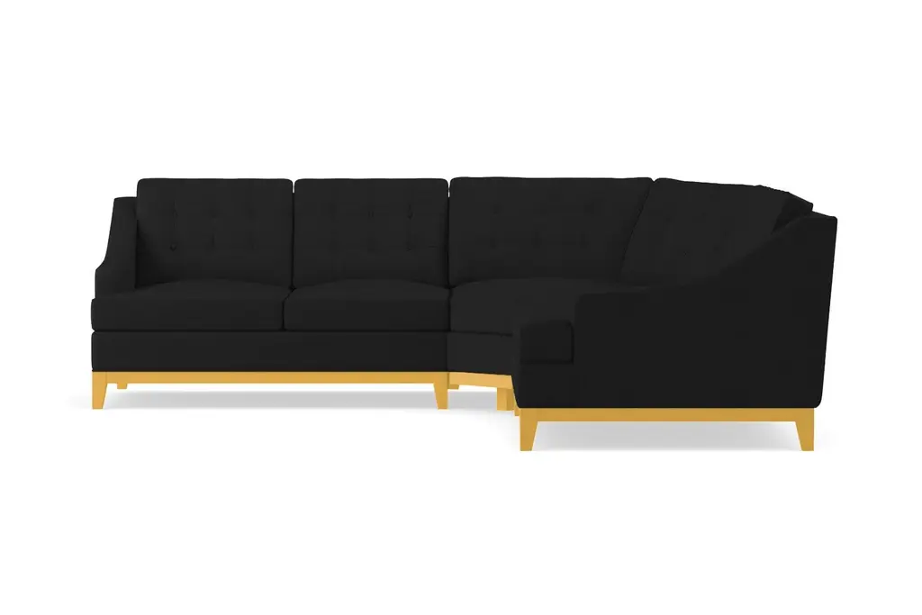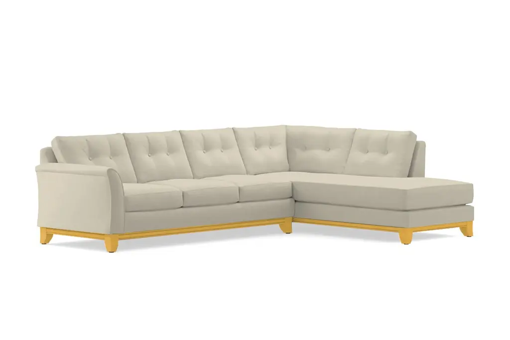 The Bannister 3 Piece Sectional is drop dead gorgeous. It only takes one look at its elegant curves, its sharp button tufting, and its stunning wood base to see that this is a sectional that you simply cannot live without. The Bannister features enough seating for the entire family without sacrificing on its high-end aesthetics.