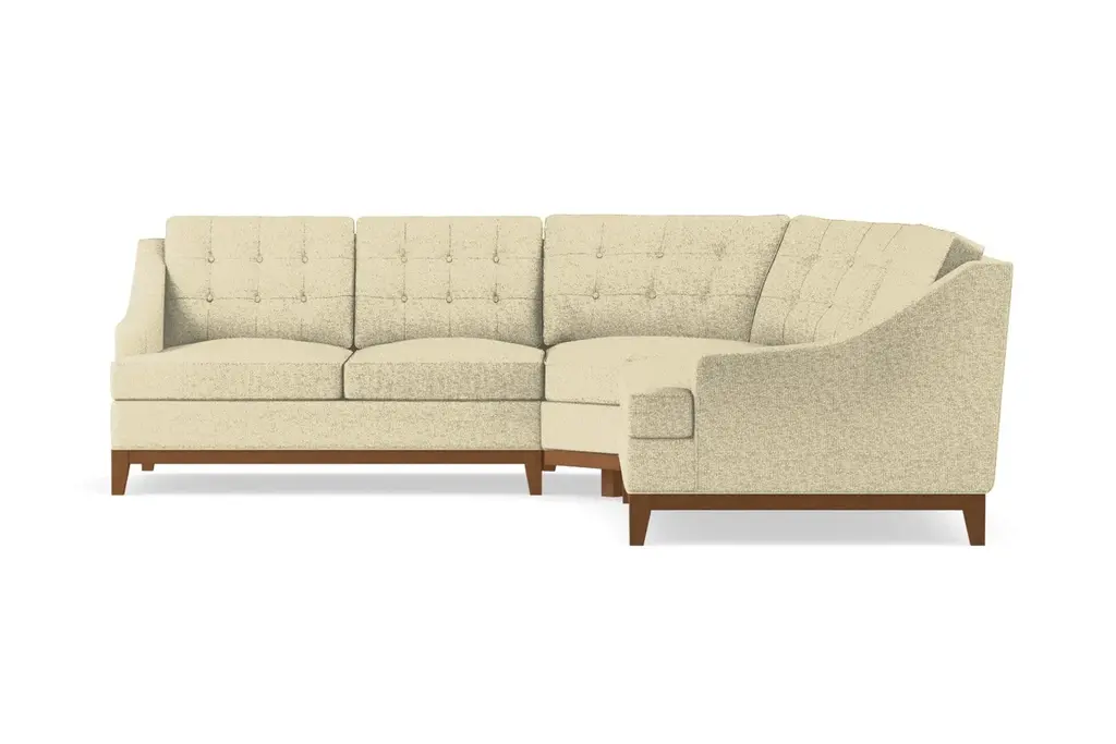 The Bannister 3 Piece Sectional is drop dead gorgeous. It only takes one look at its elegant curves, its sharp button tufting, and its stunning wood base to see that this is a sectional that you simply cannot live without. The Bannister features enough seating for the entire family without sacrificing on its high-end aesthetics.