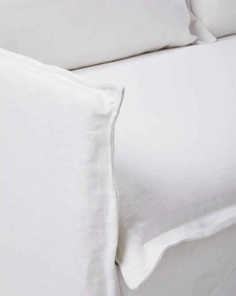 Slipcovered simplicity. Generous bench seat for settling in. A delightful drape and flattering flange. Effortlessly crisp.