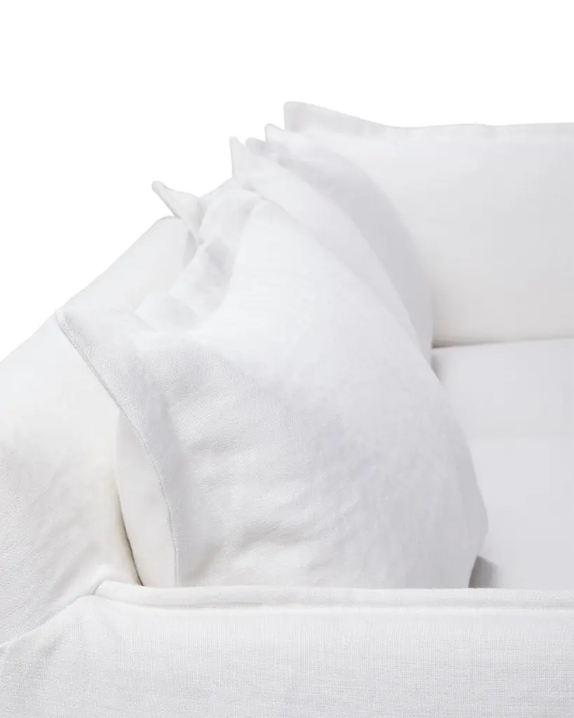 Slipcovered simplicity. Generous bench seat for settling in. A delightful drape and flattering flange. Effortlessly crisp.