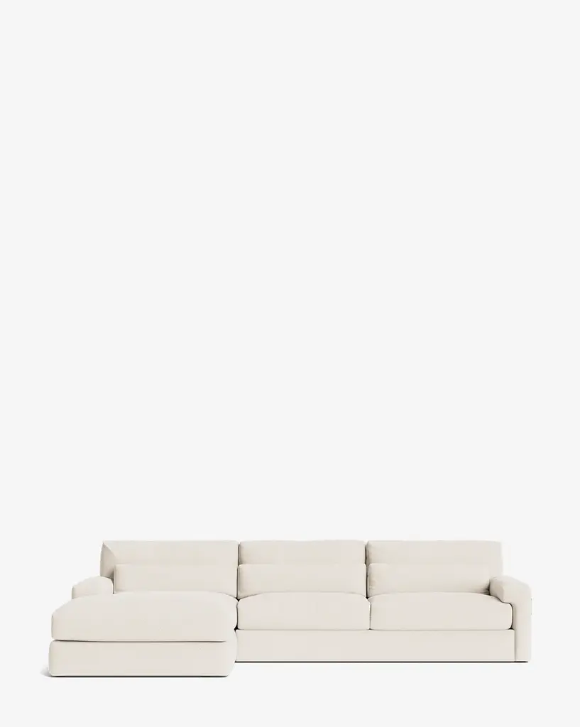 Our Beckstead Chaise Sectional 128" is inspired by modern design elements but with a classically approachable feel. Handcrafted with luxurious comfort and durability in mind, the sectional features an alder wood frame and cushions filled with a feather and down blend. The lumbar pillows create a welcoming feel while its squared arms lend an element of sophistication. Customizable in a wide array of fabrics, you can make this made-to-order piece entirely your own.