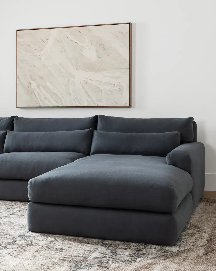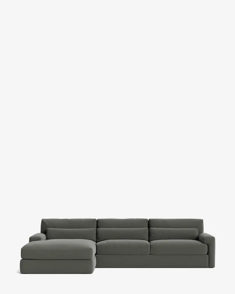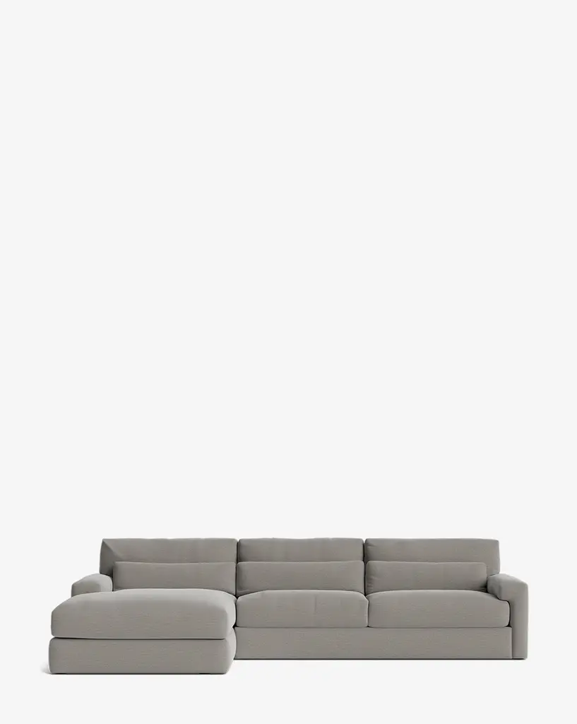 Our Beckstead Chaise Sectional 128" is inspired by modern design elements but with a classically approachable feel. Handcrafted with luxurious comfort and durability in mind, the sectional features an alder wood frame and cushions filled with a feather and down blend. The lumbar pillows create a welcoming feel while its squared arms lend an element of sophistication. Customizable in a wide array of fabrics, you can make this made-to-order piece entirely your own.