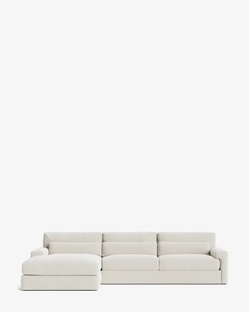 Our Beckstead Chaise Sectional 128" is inspired by modern design elements but with a classically approachable feel. Handcrafted with luxurious comfort and durability in mind, the sectional features an alder wood frame and cushions filled with a feather and down blend. The lumbar pillows create a welcoming feel while its squared arms lend an element of sophistication. Customizable in a wide array of fabrics, you can make this made-to-order piece entirely your own.