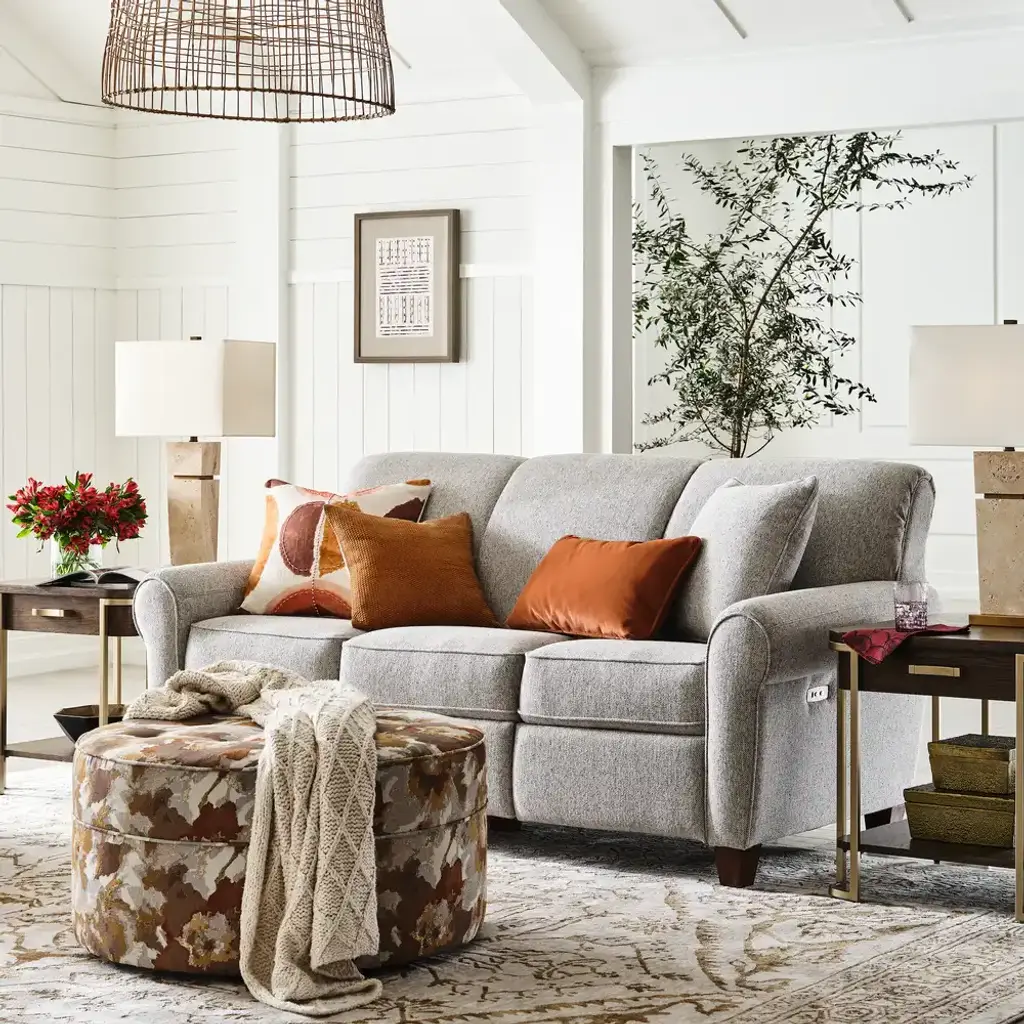 With rolled cigar arms and a subtly scalloped back, our Bennett Power Reclining Sofa boasts details you might consider more refined than relaxed. But take one look at the sleek side power buttons and built-in USB ports, and it’s clear this classic style has been given a modern makeover. Introducing duo™ from La-Z-Boy®. This revolutionary new line of sofas, sectionals, loveseats and chairs gives you both high-end style and the unexpected power to recline. Who knew timeless style could be so on-trend. Discover the new look of reclining comfort with duo™.