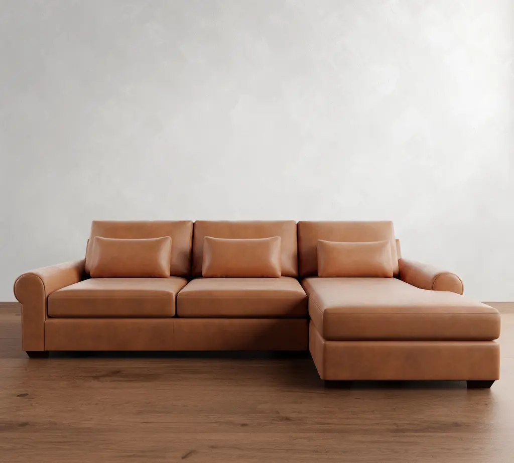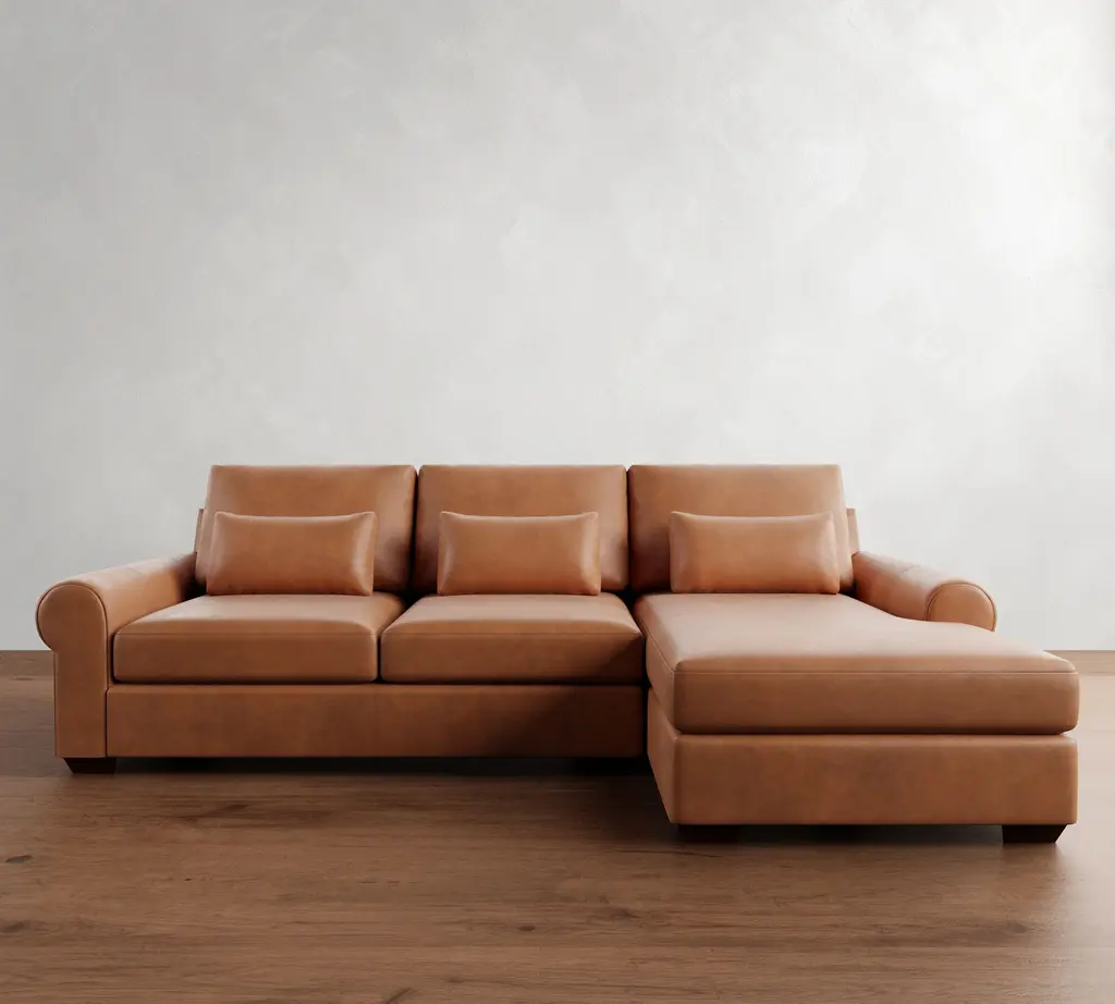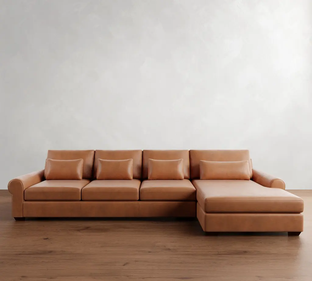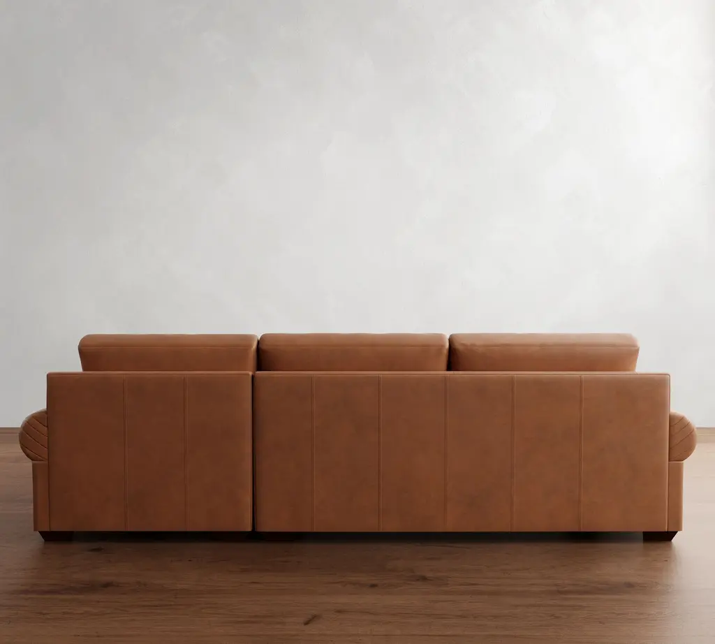 Big Sur Roll Arm Deep Seat Leather Chaise Sectional (115"–157")