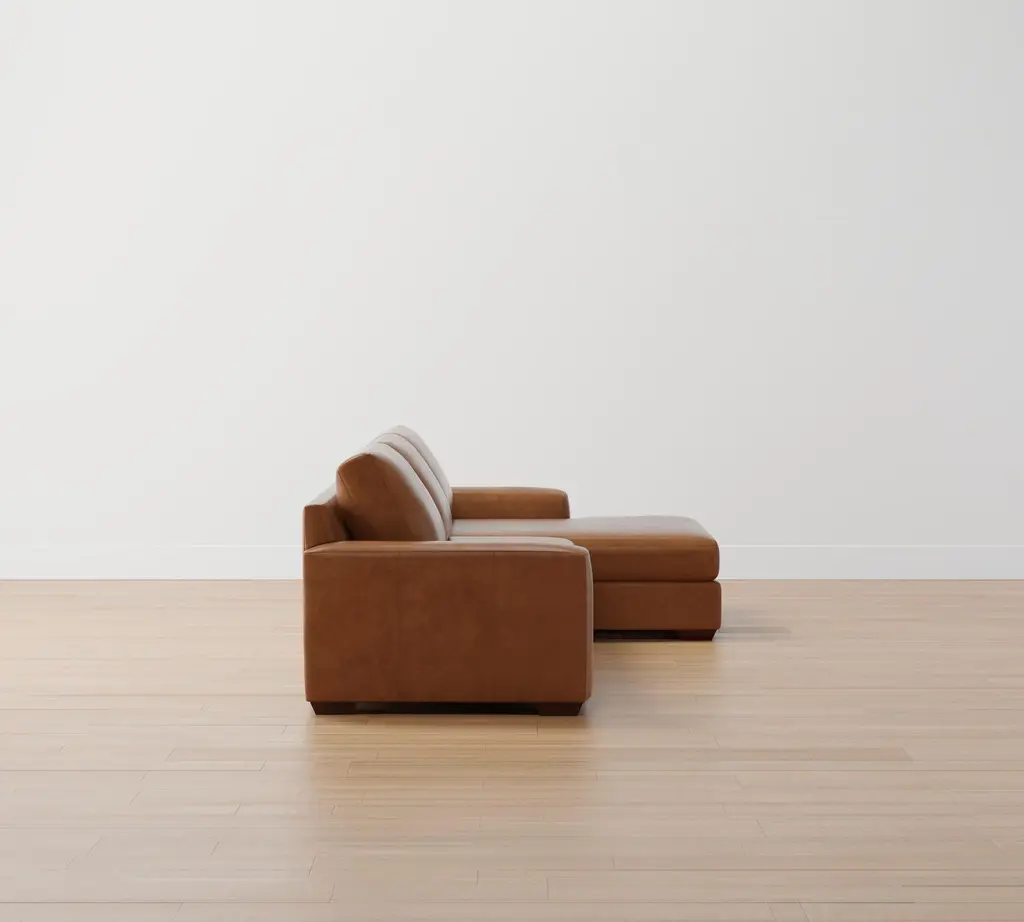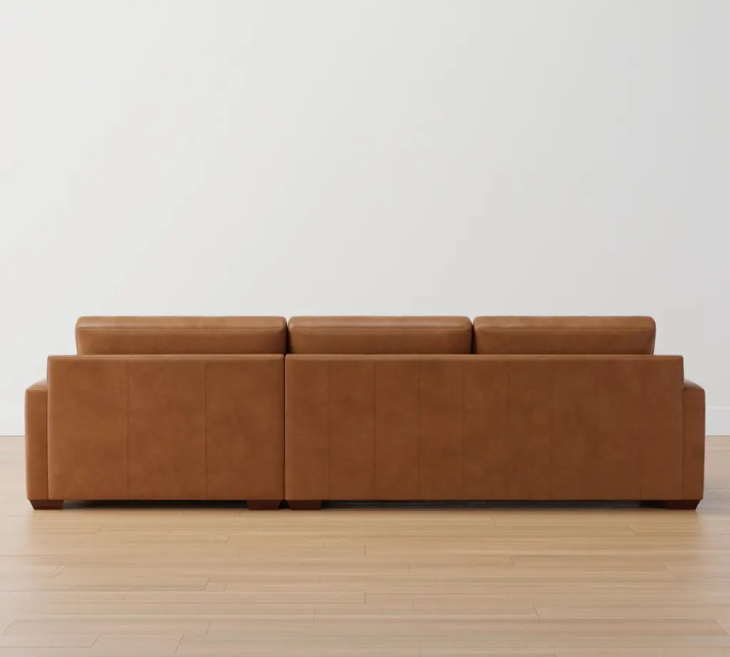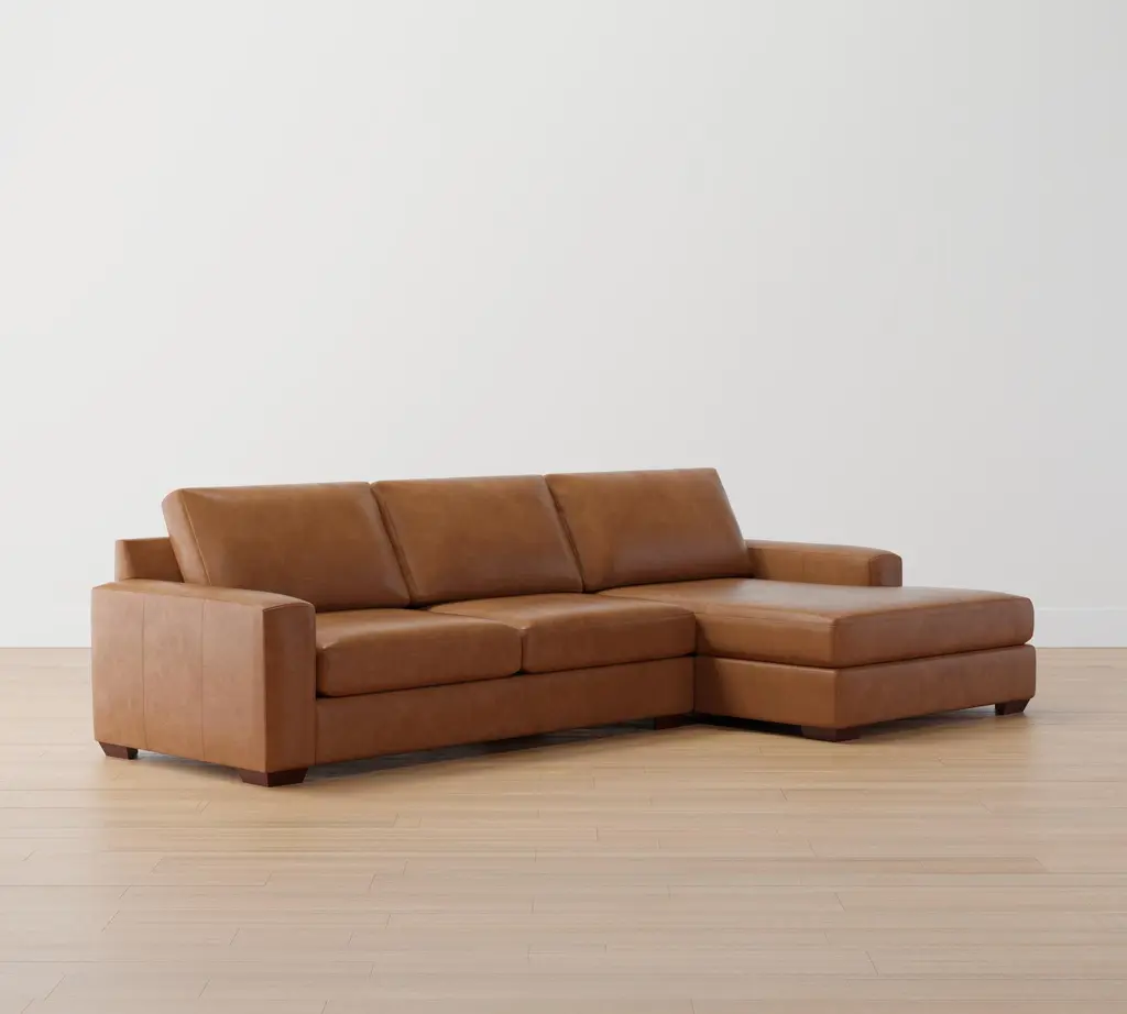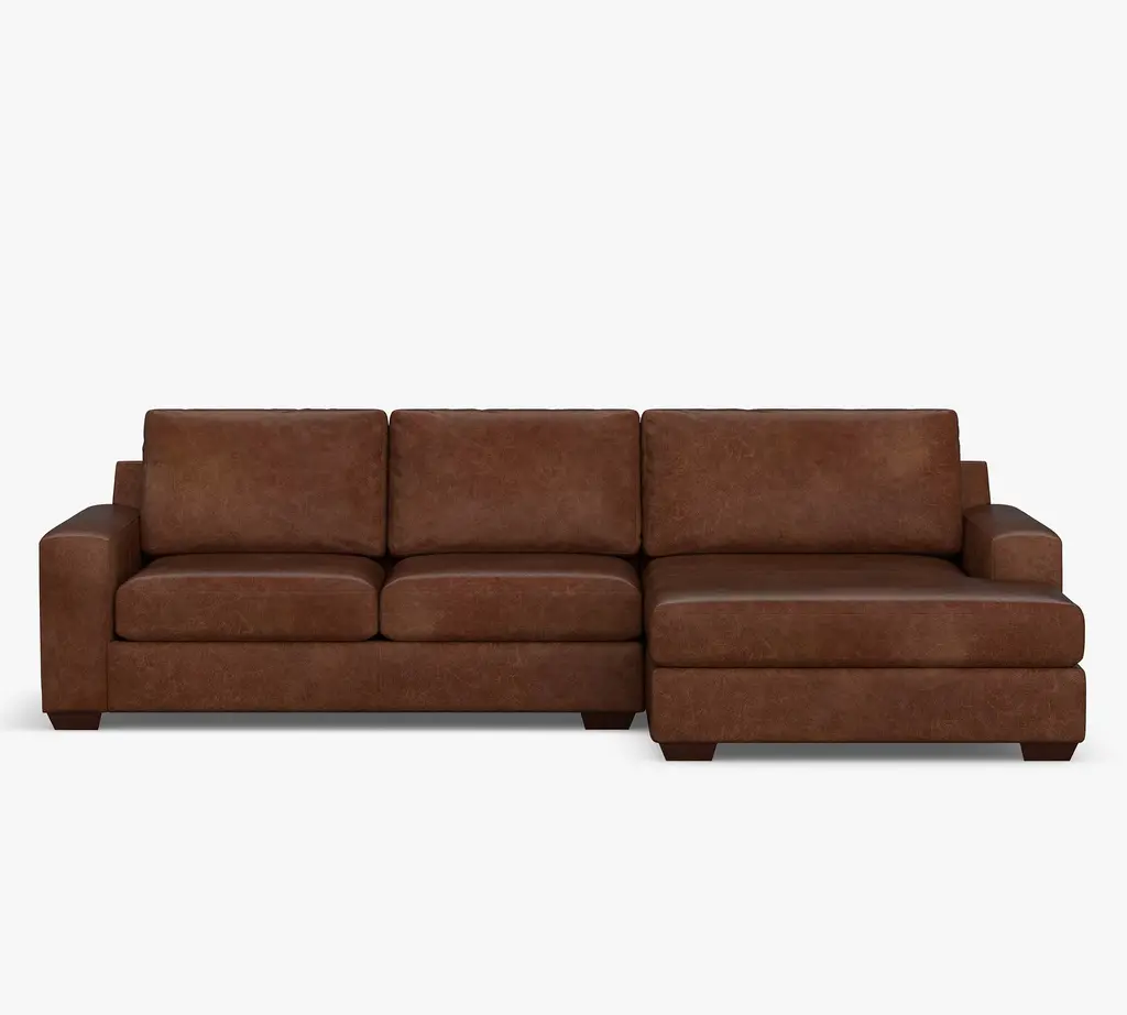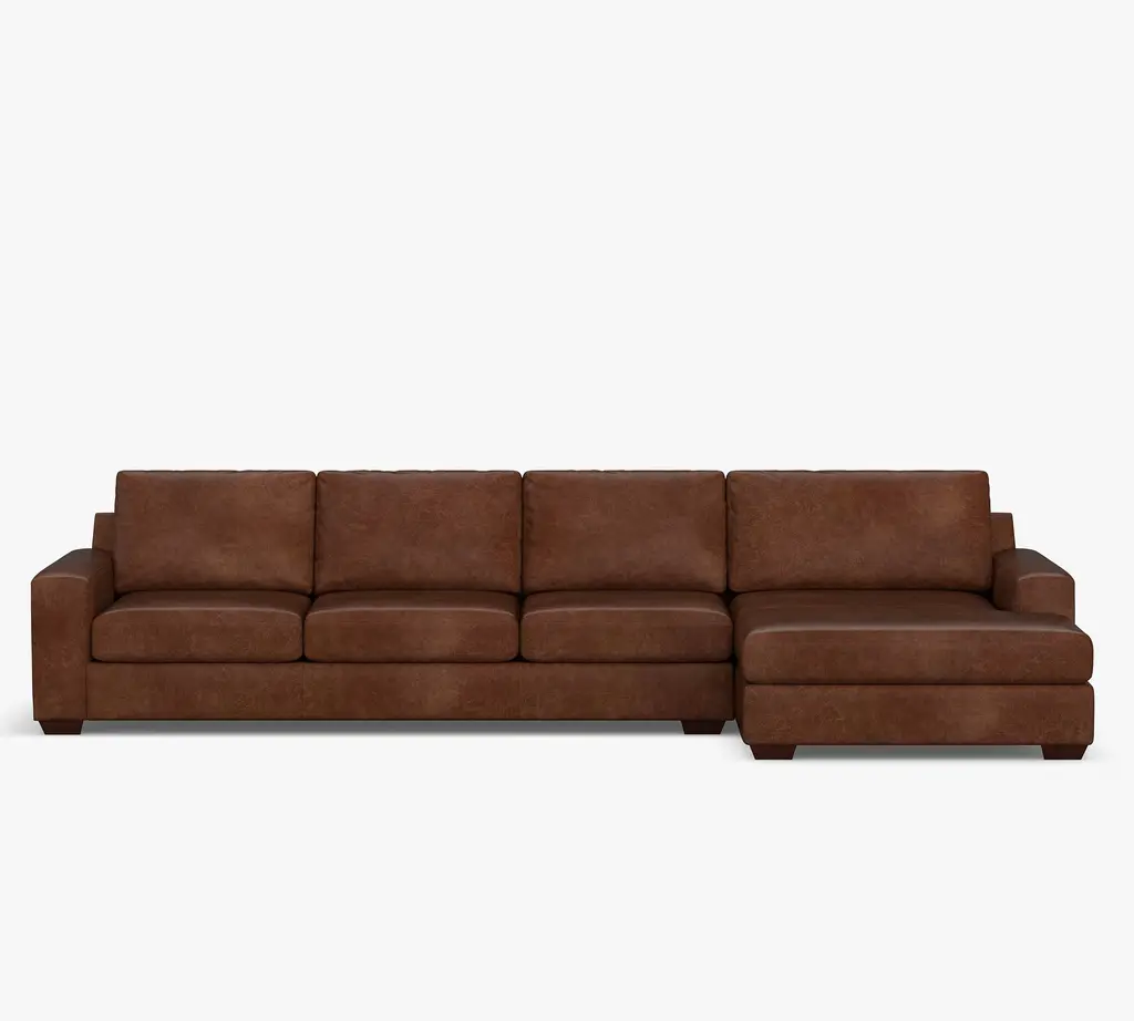 Big Sur Square Arm Leather Sofa Double Wide Chaise Sectional