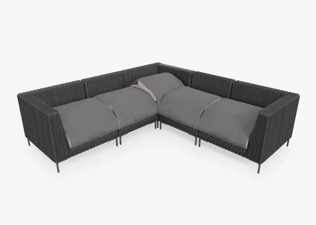 Black Wicker Outdoor Corner Sectional - 5 Seat