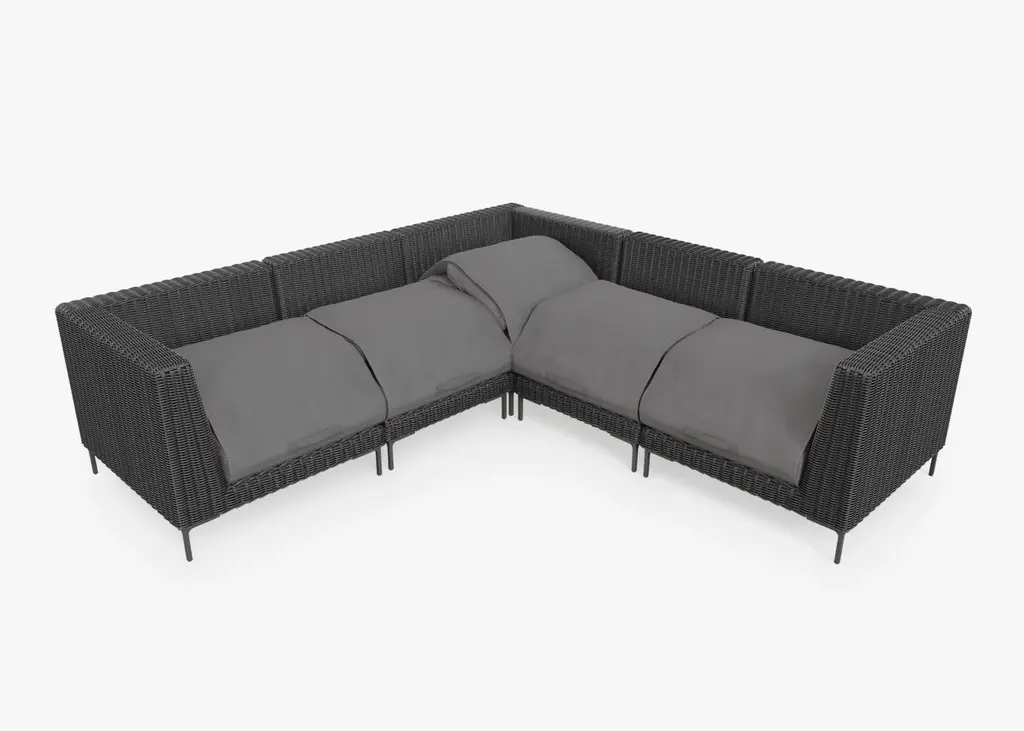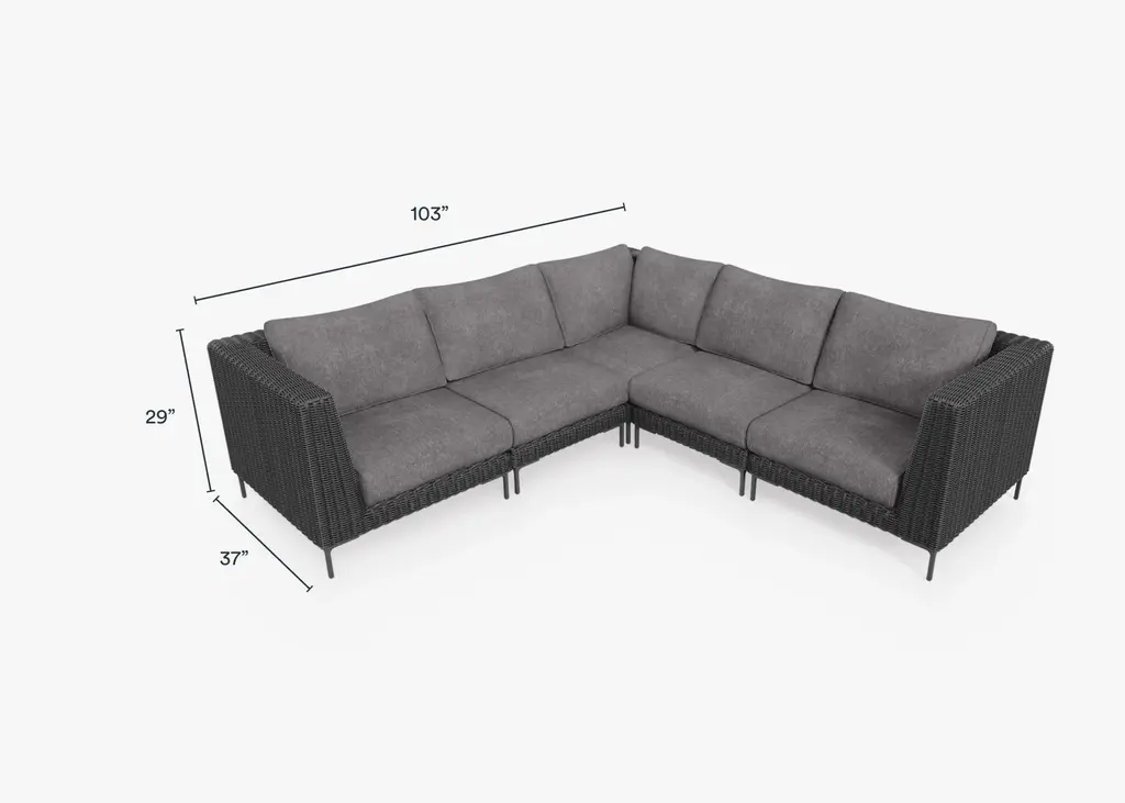 Black Wicker Outdoor Corner Sectional - 5 Seat