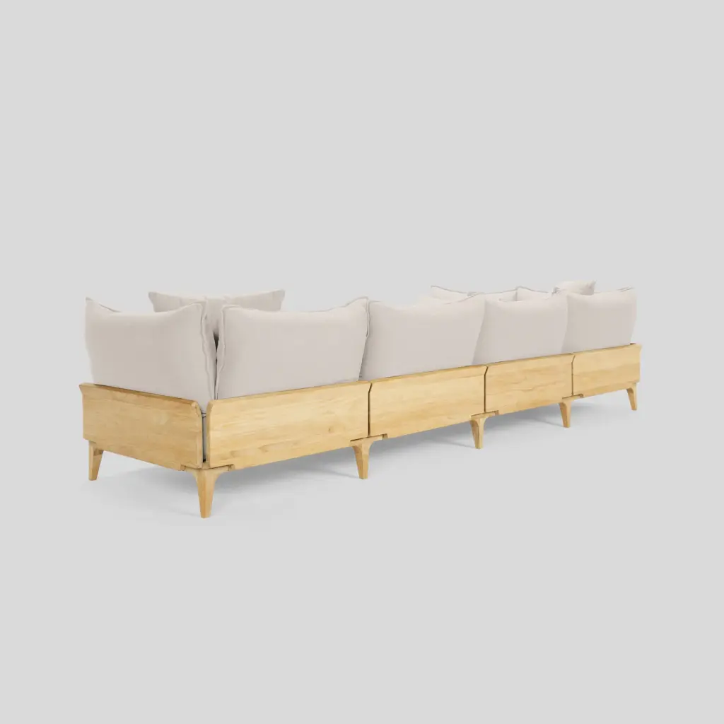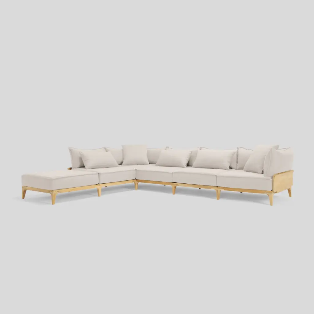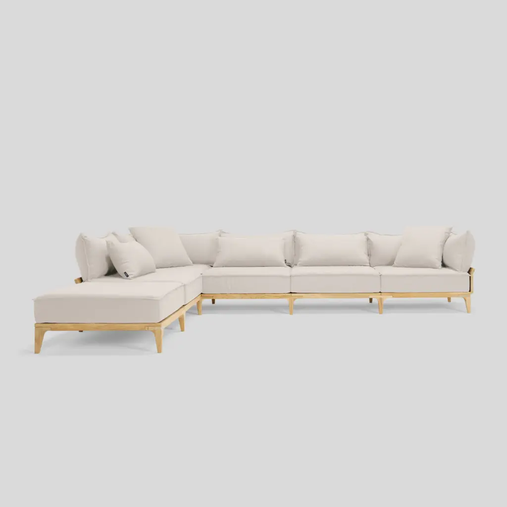 Luxurious in style and comfort, The Bluff collection is crafted with SVLK-certified teak, fade-proof Sunbrella® fabric and quick-dry cushions. Handcrafted details add elegance and highlight the beauty of the natural wood grain. Floating cushions, extra deep seats and down-like throw pillows make it a vacation-at-home favorite.