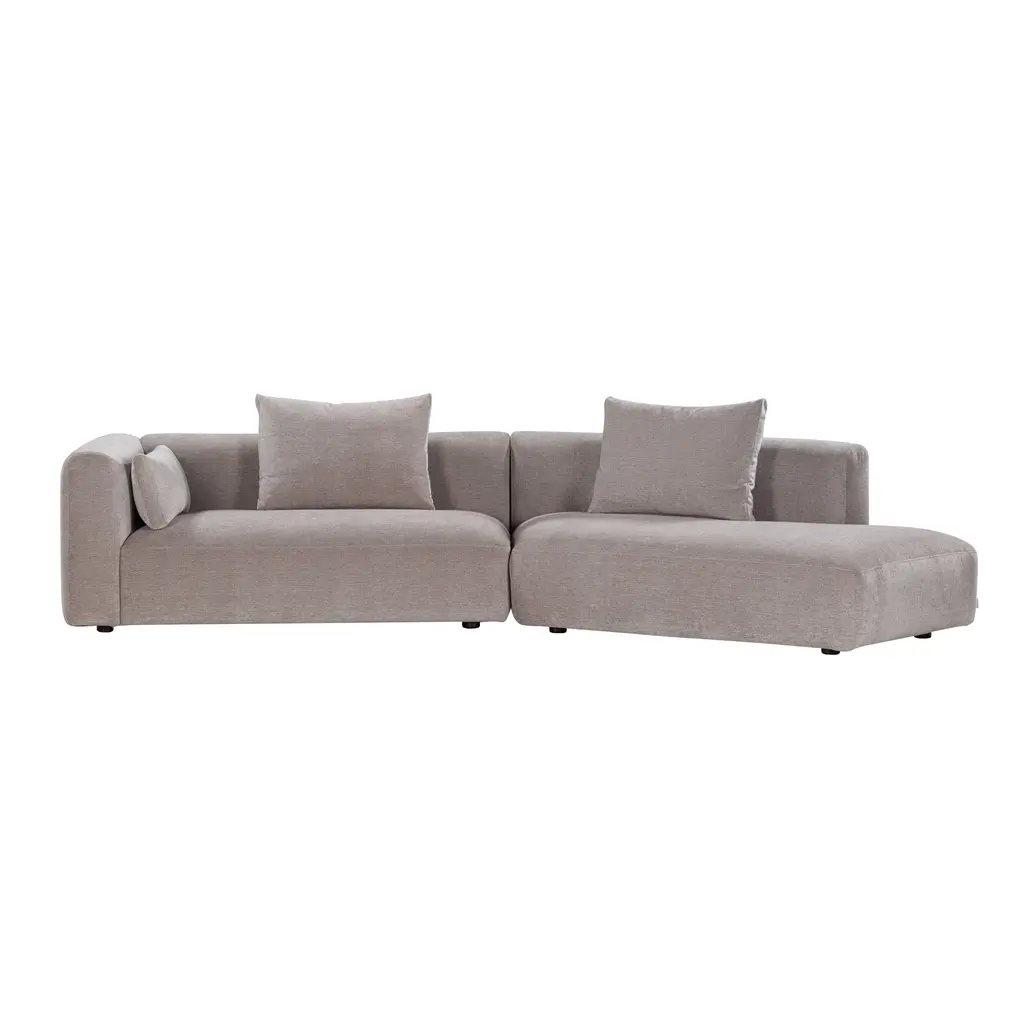 The Boketto Pre-Configured Sofa - Setup 5, designed by Lars Wendelbo for Wendelbo, embodies the Japanese concept of "boketto" – the art of peaceful reflection and non-doing. This thoughtfully proportioned sectional transforms lounging into a meditative experience through its perfectly balanced design and exceptional comfort. Distinguished by gently rounded rectangles and clean architectural lines, the Boketto's sculptural silhouette creates a visual harmony that anchors contemporary living spaces. The modular design of Setup 5 features a spacious chaise configuration that invites full-body relaxation while maintaining an elegant, streamlined profile that appears to float above its discreet legs. Wendelbo's three generations of upholstery expertise are evident in every detail – from the precisely tailored seams to the plush, supportive cushioning that retains its form through years of daily use. The sofa's substantial proportions provide ample space for family gatherings, while its carefully considered scale prevents it from overwhelming the room. Choose between the curated designer selections of Zest (warm gray) or Spectrum (deep forest green), or personalize your Boketto from hundreds of premium upholstery options to complement your interior palette. Each fabric option has been selected to highlight the sofa's sculptural form while providing exceptional durability for everyday living. The Boketto exemplifies Wendelbo's signature balance of Scandinavian craftsmanship and contemporary design sensibility – creating a centerpiece that elevates your living space without sacrificing the comfort that makes a house feel like home. Setup Includes: [1] Module 5 - Two-seater side left [1] Module 18 - Angled chaise lounge side right *Throw pillows sold separately