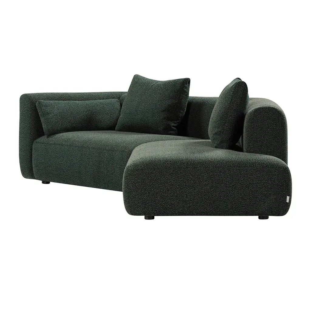 The Boketto Pre-Configured Sofa - Setup 5, designed by Lars Wendelbo for Wendelbo, embodies the Japanese concept of "boketto" – the art of peaceful reflection and non-doing. This thoughtfully proportioned sectional transforms lounging into a meditative experience through its perfectly balanced design and exceptional comfort. Distinguished by gently rounded rectangles and clean architectural lines, the Boketto's sculptural silhouette creates a visual harmony that anchors contemporary living spaces. The modular design of Setup 5 features a spacious chaise configuration that invites full-body relaxation while maintaining an elegant, streamlined profile that appears to float above its discreet legs. Wendelbo's three generations of upholstery expertise are evident in every detail – from the precisely tailored seams to the plush, supportive cushioning that retains its form through years of daily use. The sofa's substantial proportions provide ample space for family gatherings, while its carefully considered scale prevents it from overwhelming the room. Choose between the curated designer selections of Zest (warm gray) or Spectrum (deep forest green), or personalize your Boketto from hundreds of premium upholstery options to complement your interior palette. Each fabric option has been selected to highlight the sofa's sculptural form while providing exceptional durability for everyday living. The Boketto exemplifies Wendelbo's signature balance of Scandinavian craftsmanship and contemporary design sensibility – creating a centerpiece that elevates your living space without sacrificing the comfort that makes a house feel like home. Setup Includes: [1] Module 5 - Two-seater side left [1] Module 18 - Angled chaise lounge side right *Throw pillows sold separately
