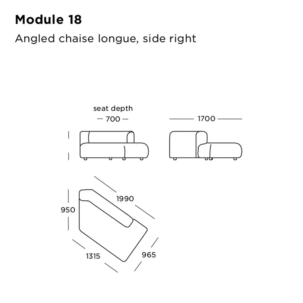 The Boketto Pre-Configured Sofa - Setup 5, designed by Lars Wendelbo for Wendelbo, embodies the Japanese concept of "boketto" – the art of peaceful reflection and non-doing. This thoughtfully proportioned sectional transforms lounging into a meditative experience through its perfectly balanced design and exceptional comfort. Distinguished by gently rounded rectangles and clean architectural lines, the Boketto's sculptural silhouette creates a visual harmony that anchors contemporary living spaces. The modular design of Setup 5 features a spacious chaise configuration that invites full-body relaxation while maintaining an elegant, streamlined profile that appears to float above its discreet legs. Wendelbo's three generations of upholstery expertise are evident in every detail – from the precisely tailored seams to the plush, supportive cushioning that retains its form through years of daily use. The sofa's substantial proportions provide ample space for family gatherings, while its carefully considered scale prevents it from overwhelming the room. Choose between the curated designer selections of Zest (warm gray) or Spectrum (deep forest green), or personalize your Boketto from hundreds of premium upholstery options to complement your interior palette. Each fabric option has been selected to highlight the sofa's sculptural form while providing exceptional durability for everyday living. The Boketto exemplifies Wendelbo's signature balance of Scandinavian craftsmanship and contemporary design sensibility – creating a centerpiece that elevates your living space without sacrificing the comfort that makes a house feel like home. Setup Includes: [1] Module 5 - Two-seater side left [1] Module 18 - Angled chaise lounge side right *Throw pillows sold separately