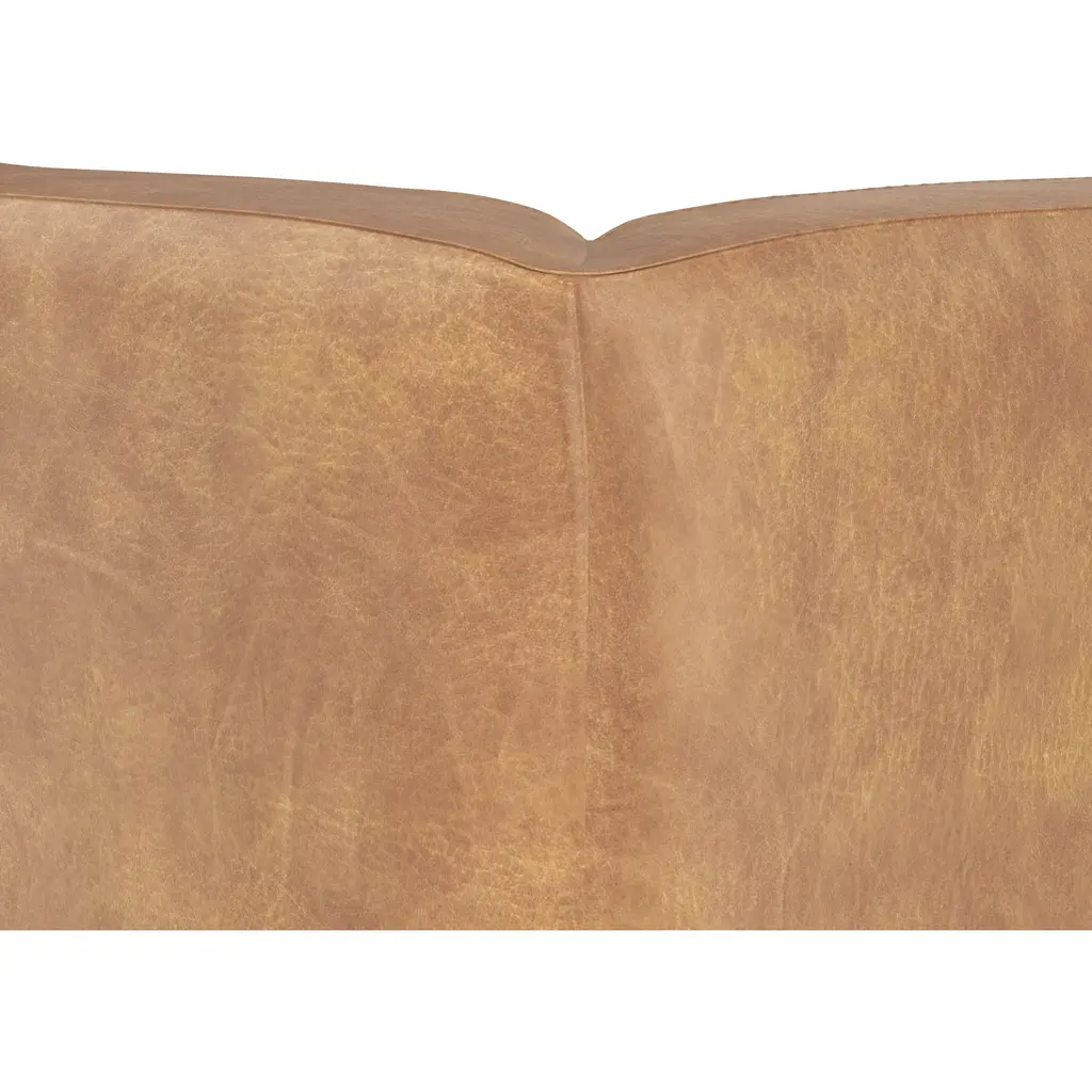 A dazzling Italian-made sofa chaise that magnificently blends modern style with undeniable comfort. With generous seating room, this sofa is an impressive addition to any living space. Upholstered in our camel 100% Italian bovine leather for lasting quality. This rich, thoroughly dyed leather features a full grain finish with natural oils and waxes that accentuate the beautiful characteristics of the hide. Finished with matte black iron legs. Right hand facing chaise. Also stocked in barrel-dyed vintage charcoal leather. Handle with Care: This design has been crafted with 100% leather. Leather is a natural material as such, colour variations, markings, wrinkles, grooves and light scratches are acceptable and appreciated characteristics. No two pieces are alike. Visit our Product Care page for more information on how to ensure the lasting beauty of this piece.