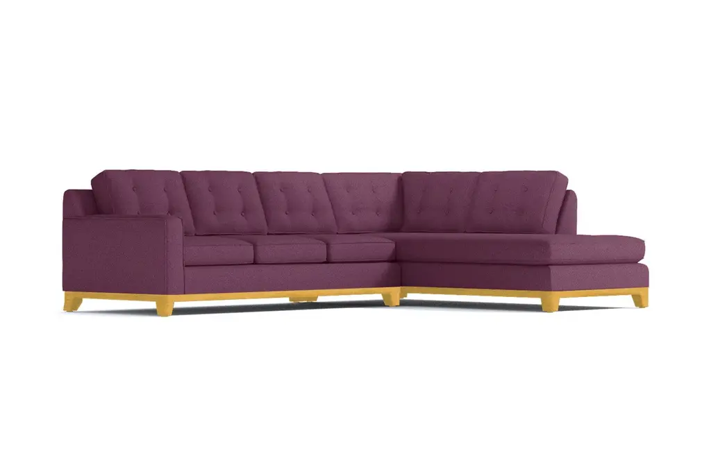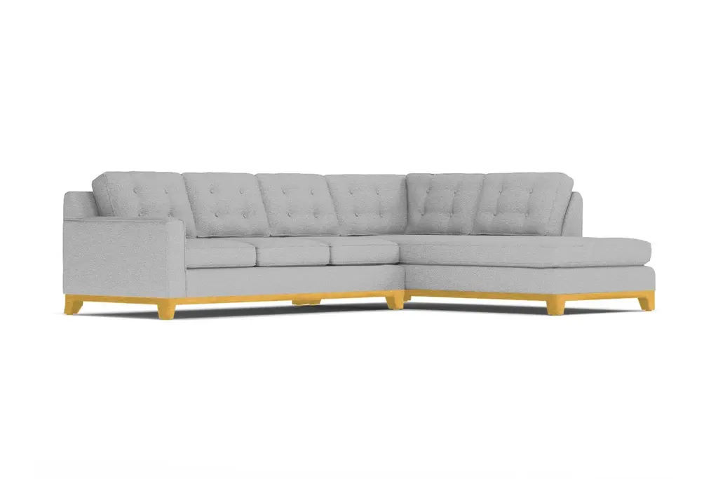 If you're in the market for a two-piece sectional, the Brentwood is too good to pass up. It features elegant button-tufted back cushions, thick arms and a dark base with tapered legs, adding to the modern vibe. The sofa features piping around the cushions and the base for added dimension. The Brentwood is available in your choice of colors and fabrics, anything from resilient and easy-to-clean poly blends to elegant upholstery with high piles for exceptional body. Not sure which fabric or color to choose? No problem. Let us know and we'll send you a few swatches to help you decide. The Brentwood is made right here in the United States. Apt2B offers a limited lifetime warranty.