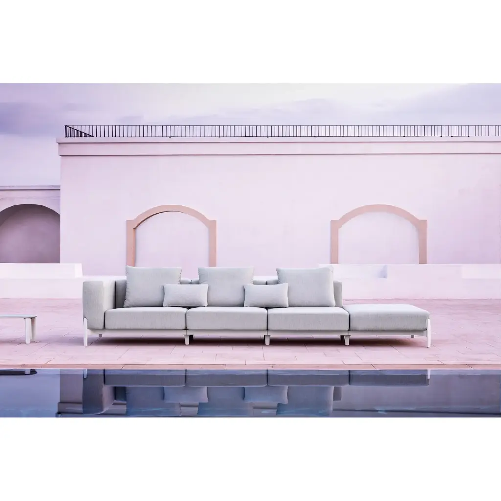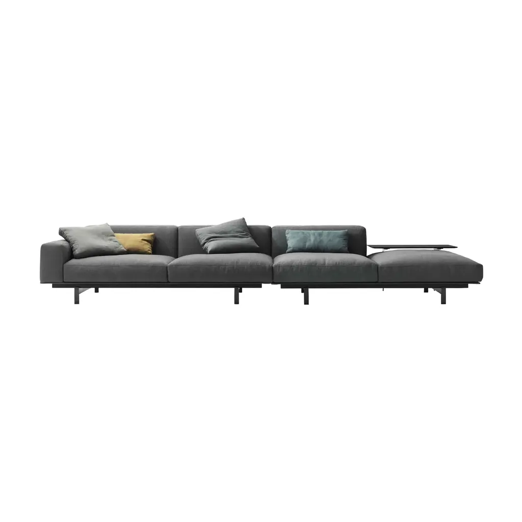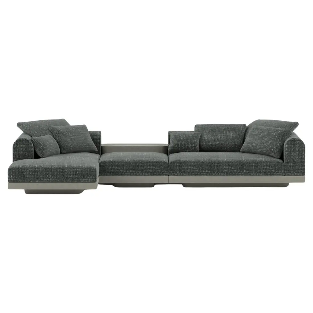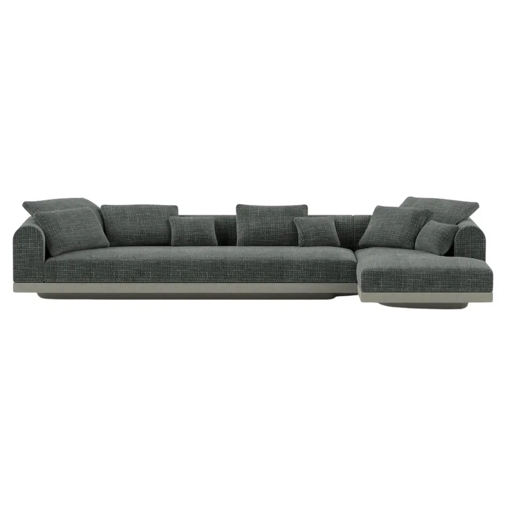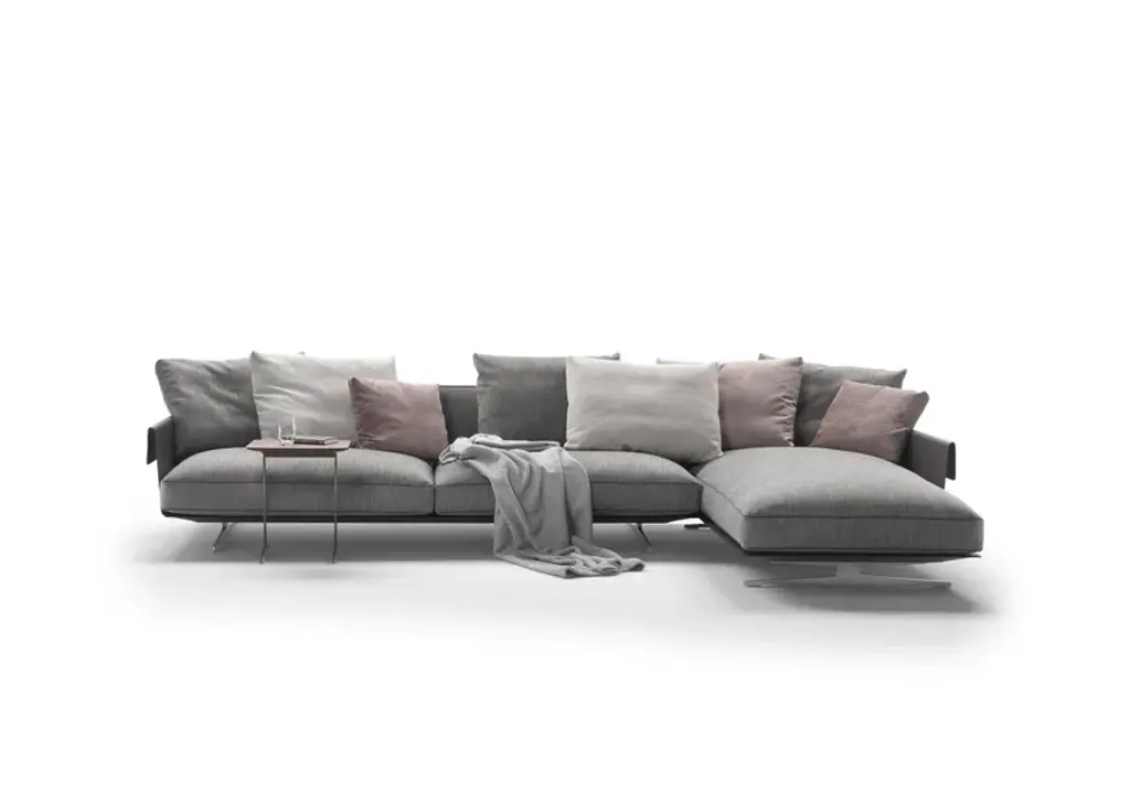 The concept for the Bretton sofa places cowhide at the heart of the design. This quintessential, timeless material is a favorite at Flexform and the company has consistently refined the craftsmanship techniques that make it a customer favorite.The roomy seat and backrest cushions are generously padded and feature elegant details – like the grosgrain piping – that contrast with the exquisite simplicity of the metal armrest clad in cowhide, available in an array of colors or in suede.The sofa rests on a refined metal base, also clad in cowhide, while the cast aluminum feet feature a sleek design and are available in a number of sophisticated finishes.An amazingly versatile sofa, Bretton offers countless combinations between the cowhide structure and the upholstered parts, which can be covered in fabric or in leather.Seat frame in metal clad in cowhide in the following colors: white (5007), grey (5003), dark brown (5004), extra dark brown (5013), black (5005), olive (5006), Bulgarian red (5008), sand (5001), tobacco (5015), dark brown suede (6004), black suede (6005), olive suede (6003), sand suede (6001). With polyurethane foam mattressBackrest in metal with molded polyurethane padding, covered with a protective laminated fabricArmrest in metal clad in cowhide in the following colors: white (5007), grey (5003), dark brown (5004), extra dark brown (5013), black (5005), olive (5006), Bulgarian red (5008), sand (5001), tobacco (5015), dark brown suede (6004), black suede (6005), olive suede (6003), sand suede (6001)Seat cushions in polyester fiber with insert in single-density crushproof material. Premium seat cushions in sterilized goose down (Assopiuma Certified, Gold Label) with insert in high resilience crushproof materialBackrest cushions in sterilized goose down (Assopiuma Certified, Gold Label)Optional cushions in sterilized goose down (Assopiuma Certified, Gold Label); upon request, with upchargeFeet in cast aluminum with grey, bronze 820, satin, chrome, burnished, black chrome, or gun metal finish. Rests on tips made of thermoplastic materialUpholstery is removable in both the fabric and leather versions.Upholstery piping, fine tailoring includes grosgrain piping that can be crafted in all the colors on the sample board.