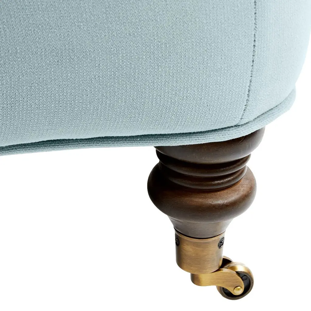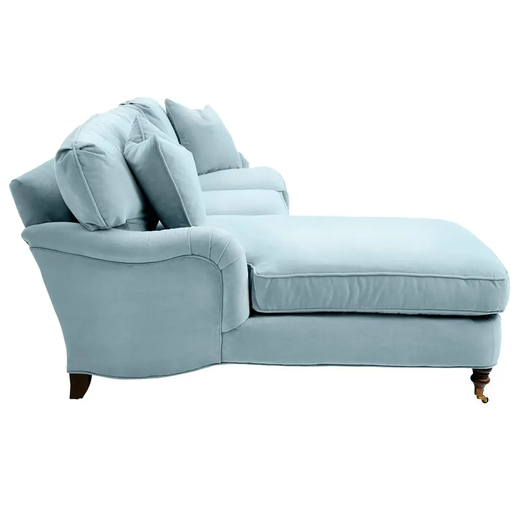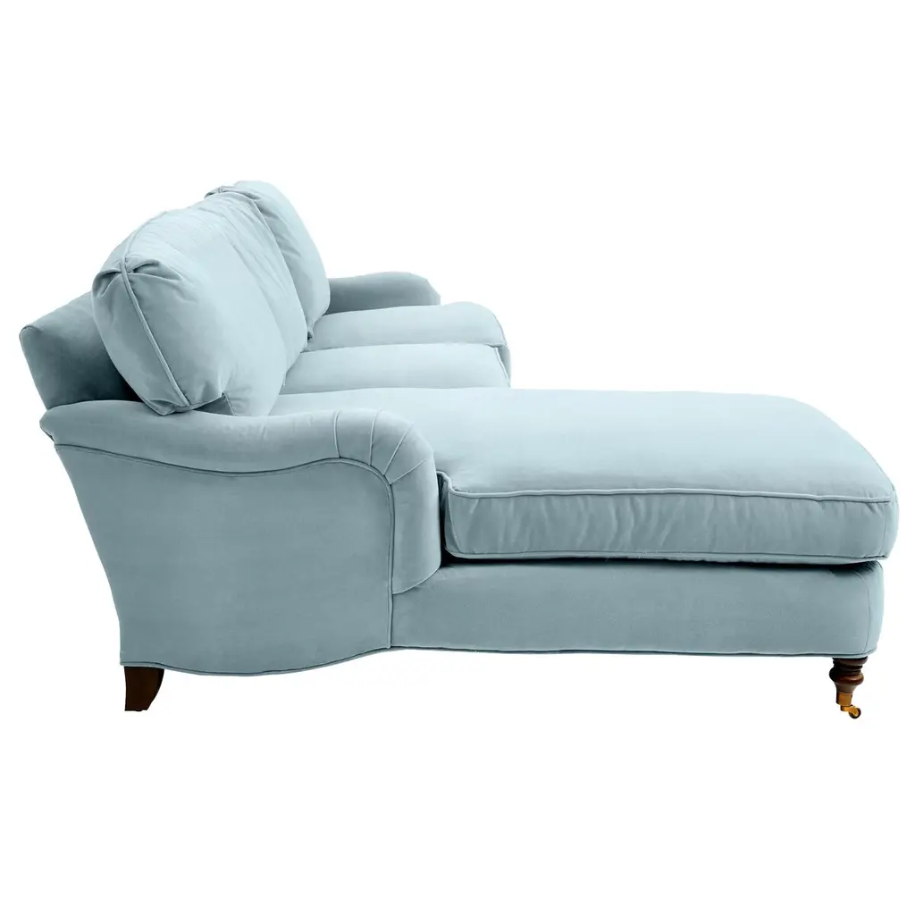 Available only at One Kings Lane: Framed in kiln-dried hardwood, this English-arm sectional is made elegant and inviting with a relaxed silhouette, neatly tailored upholstery, and generous down-and-feather fill. Its finely turned front legs are capped with brass casters for easy mobility and scratch-free surface protection.