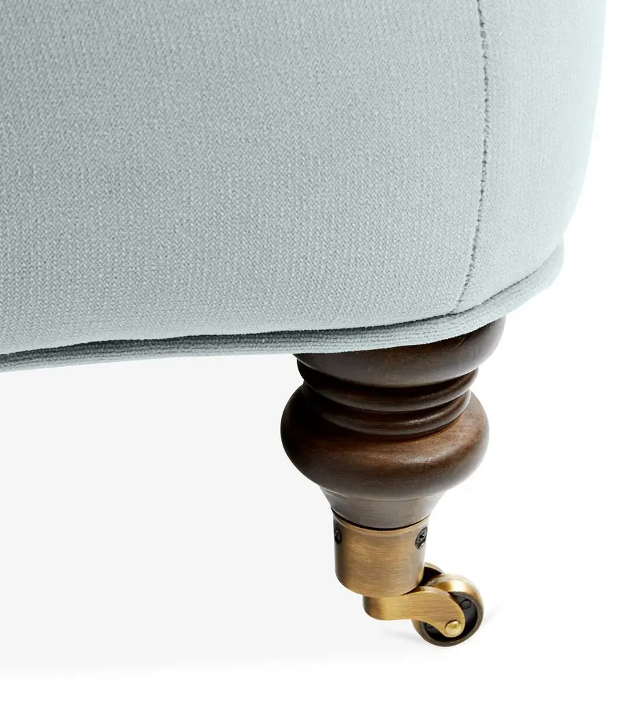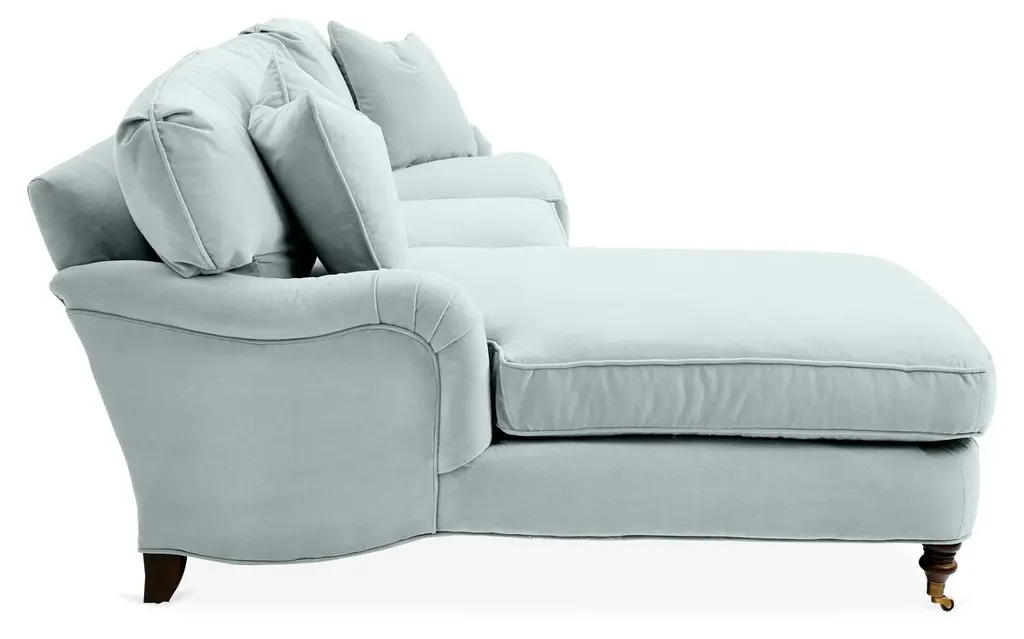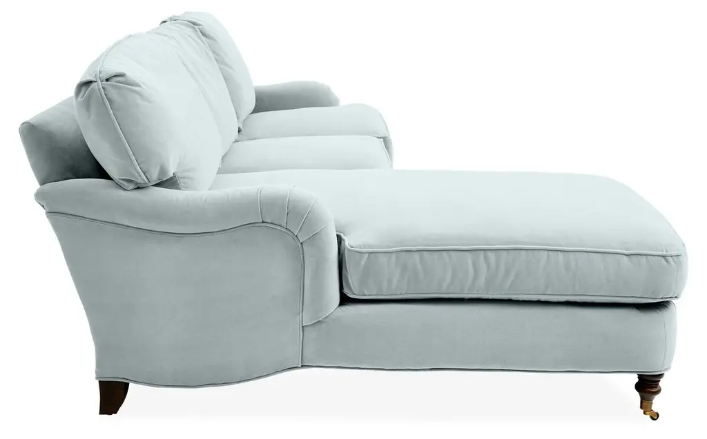Available only at One Kings Lane: Framed in kiln-dried hardwood, this English-arm sectional is made elegant and inviting with a relaxed silhouette, neatly tailored upholstery, and generous down-and-feather fill. Its finely turned front legs are capped with brass casters for easy mobility and scratch-free surface protection.