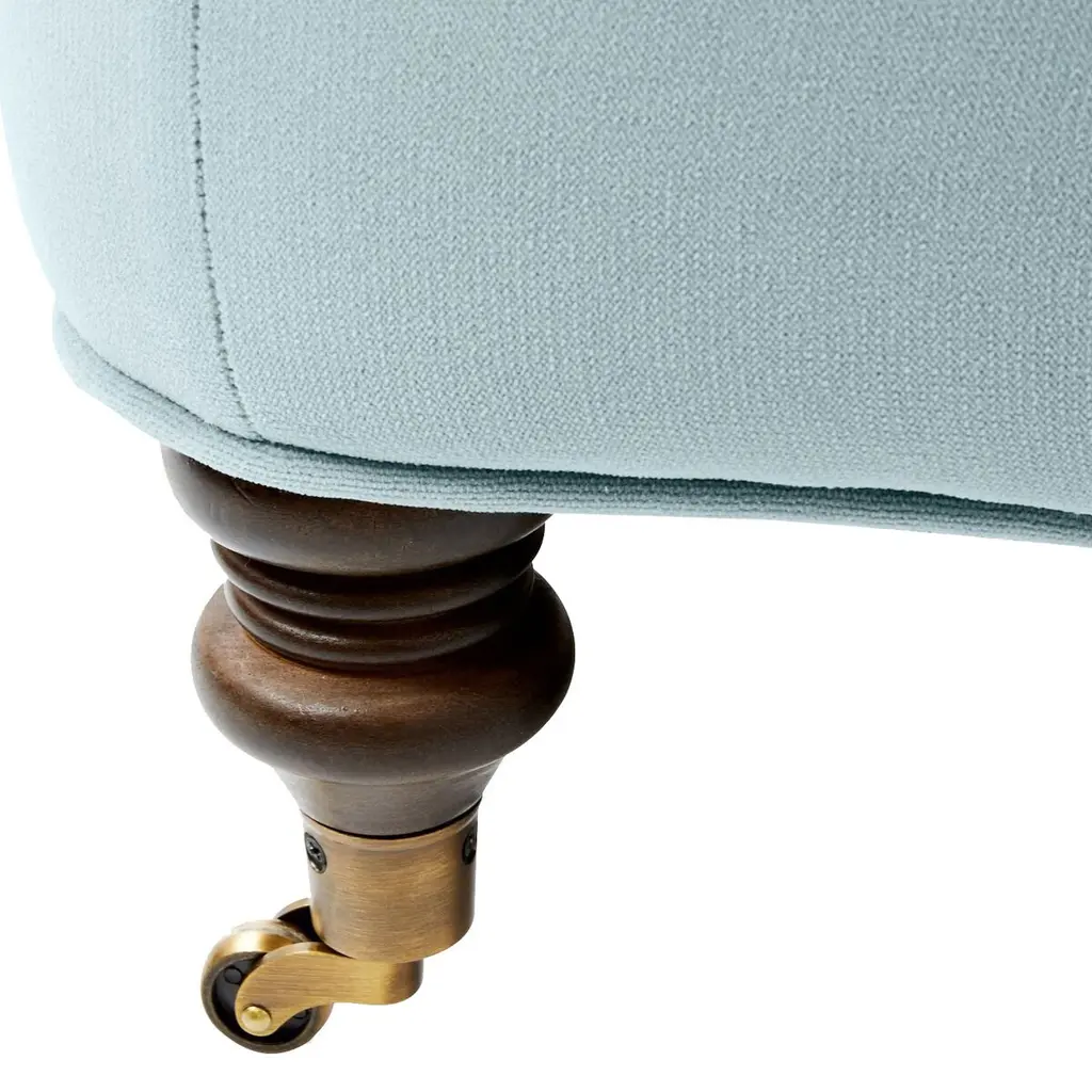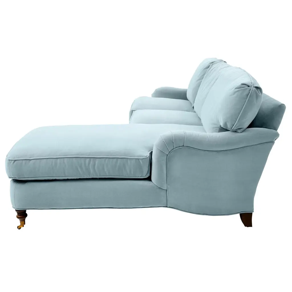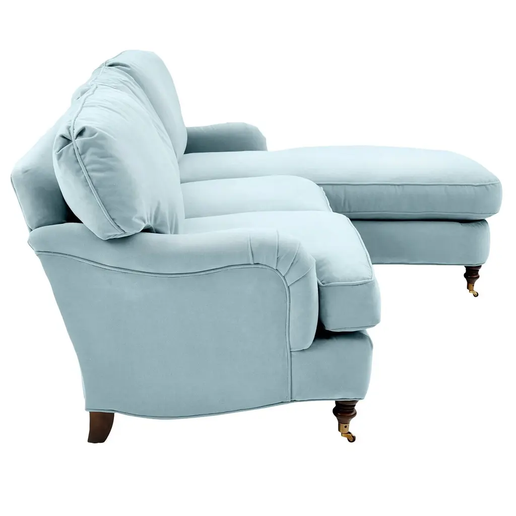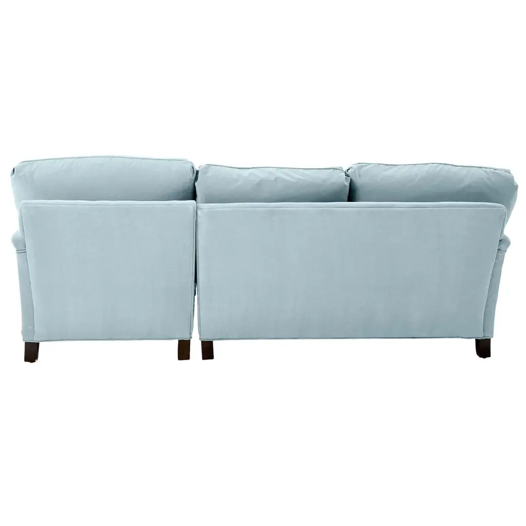 Available only at One Kings Lane: Framed in kiln-dried hardwood, this English-arm sectional is made elegant and inviting with a relaxed silhouette, neatly tailored upholstery, and generous down-and-feather fill. Its finely turned front legs are capped with brass casters for easy mobility and scratch-free surface protection.