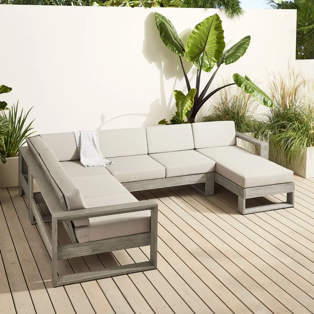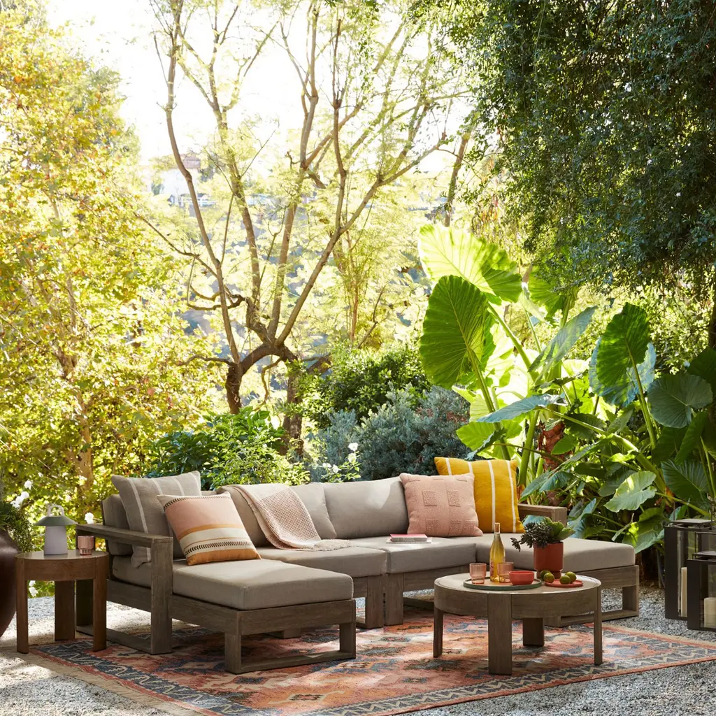 Rustic look from the wire-brushed wood and weathered finish. Made from kiln-dried, sustainably sourced wood. Upgrade to high-performance, long-lasting Sunbrella® fabric. Contract Grade, so you know it’s built to last.