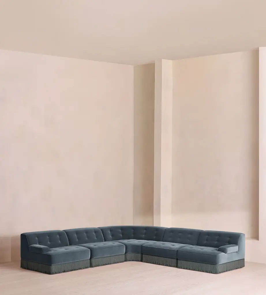 Opulence and comfort find a home in this exceptional sectional sofa. The grand, L-shaped design features an MDF base with matte Ebony lacquer supporting layered leather cushions padded in polyurethane foam. A table made of MDF in Biotite with a high-gloss finish separates the larger quadrant from the cozy loveseat. CALTB117 certification available. Inquire with the Concierge about possible customization, including fabric, leather, and lacquer options. Decorative pillows upon request.