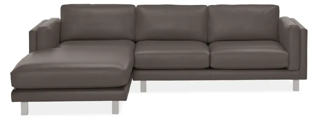 A modern design with classic details, the Cade leather sectional with chaise lets you lounge with a refined look. A deep seat invites relaxation, while tall square legs give this sectional a light presence. Attached arm cushions stay neat while adding an additional layer of comfort.