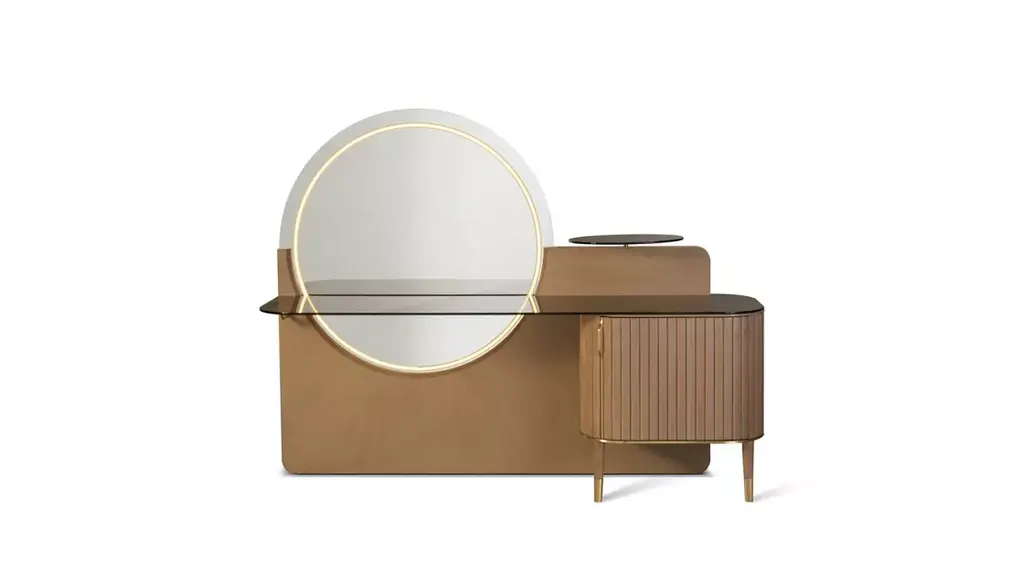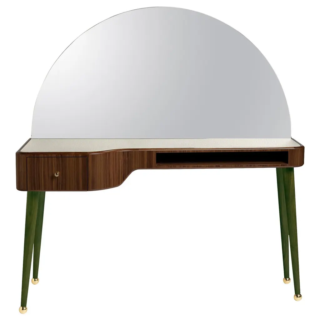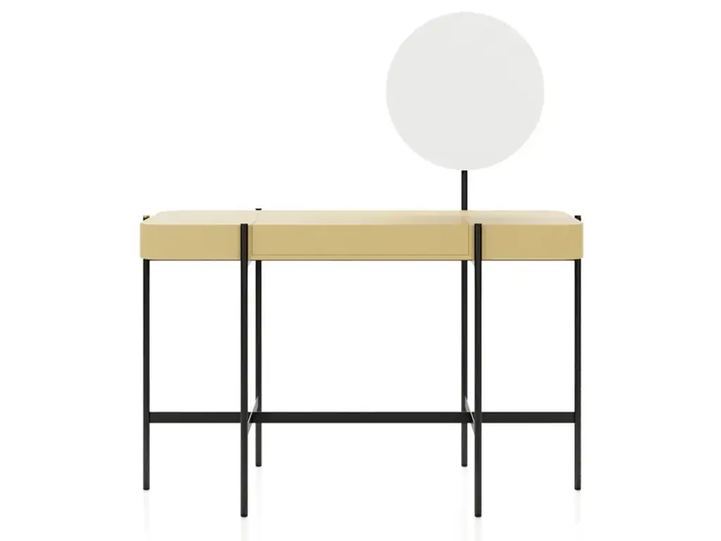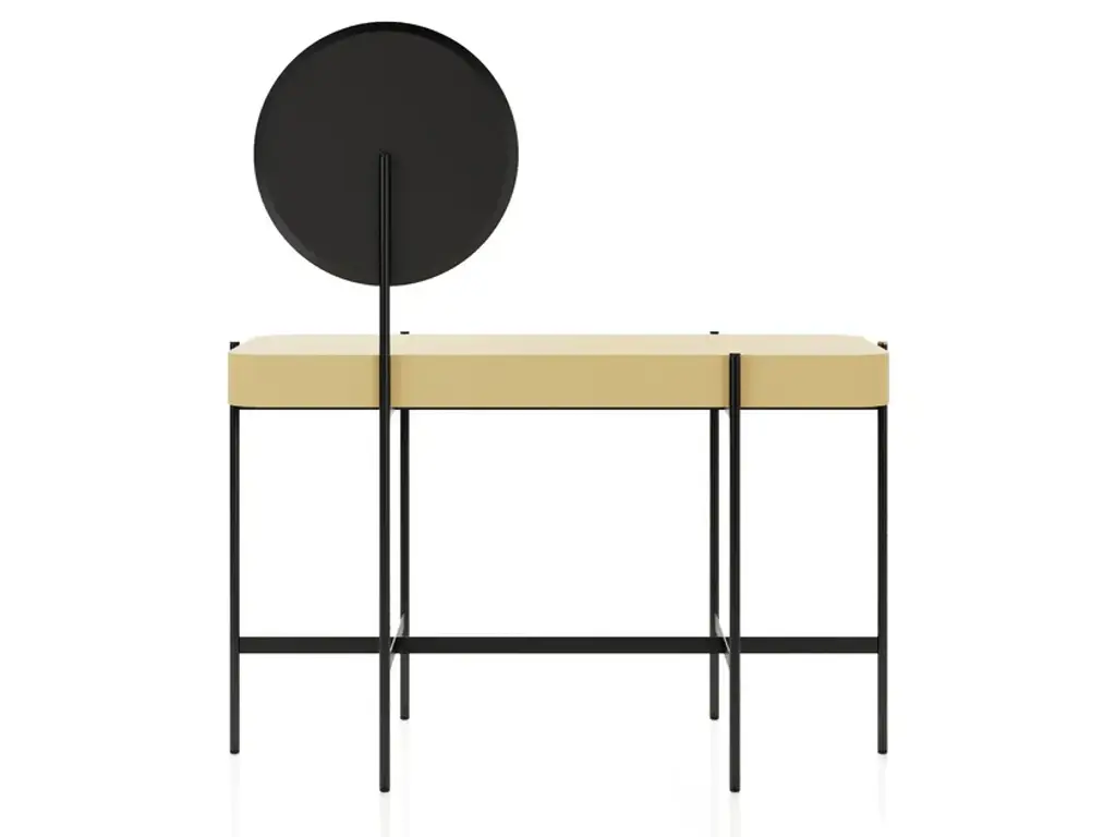CAILLOU is a MDF dressing table.Structure: 15 mm thick MDF wood, lacquer (RAL) or wood effect finish of your choiceBase: powder-coated metal baseFrom the creative vision of Liu Jo was born the custom-made living room. Craftsmanship, versatility, style and sustainability come together to enter the world of home and transform the furniture. Liujo’s living collection is a declaration of intent: new forms and customizable materials open the space to new reading keys and give life to unique pieces. The house is dressed and changed to meet all the needs of everyday life detaching from the classic nomenclatures and running on elegant lines, delicate finishes, soft fabrics and customizable colors. Not only sofas, poufs or armchairs, but design with a strong identity, free, sectional and removable, with irregular and fresh shapes that revolutionize the environment. Recognizable and iconographic in ideas, shape and finish, the pieces of furniture by Liu Jo find their reason for being in contrast: structures and rigid elements are designed to contain and embrace curves and movements, enhancing personal style and easily changing position and function.