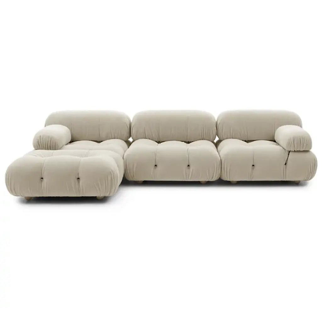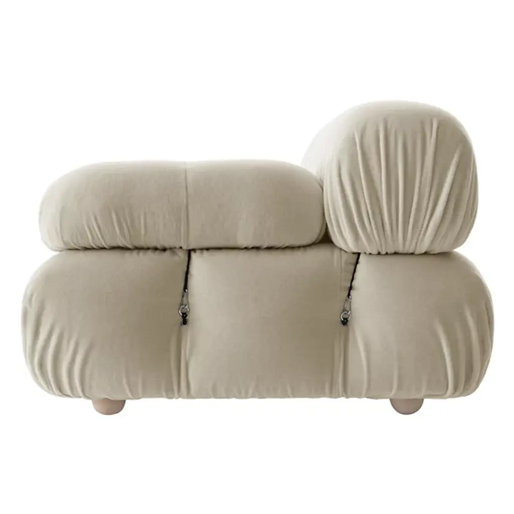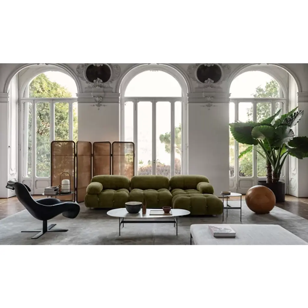 The Camaleonda Sectional Sofa from B&B Italia brings the 1970s icon to the 21st century with enhanced comfort and sustainability while maintaining its chameleon-like adaptability. Designer Mario Bellini presents organic forms with true Italian style. The soft cover and the layered internal structure are easily disassembled for recyclability. A system of steel carabiners and brass rings define the capitonné-style cover while allowing for pieces in the Camaleonda collection to be linked up as a modular composition.