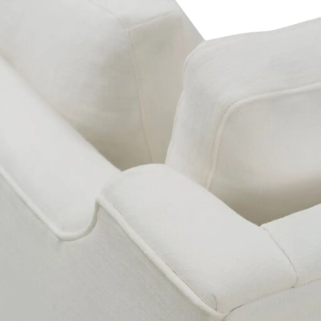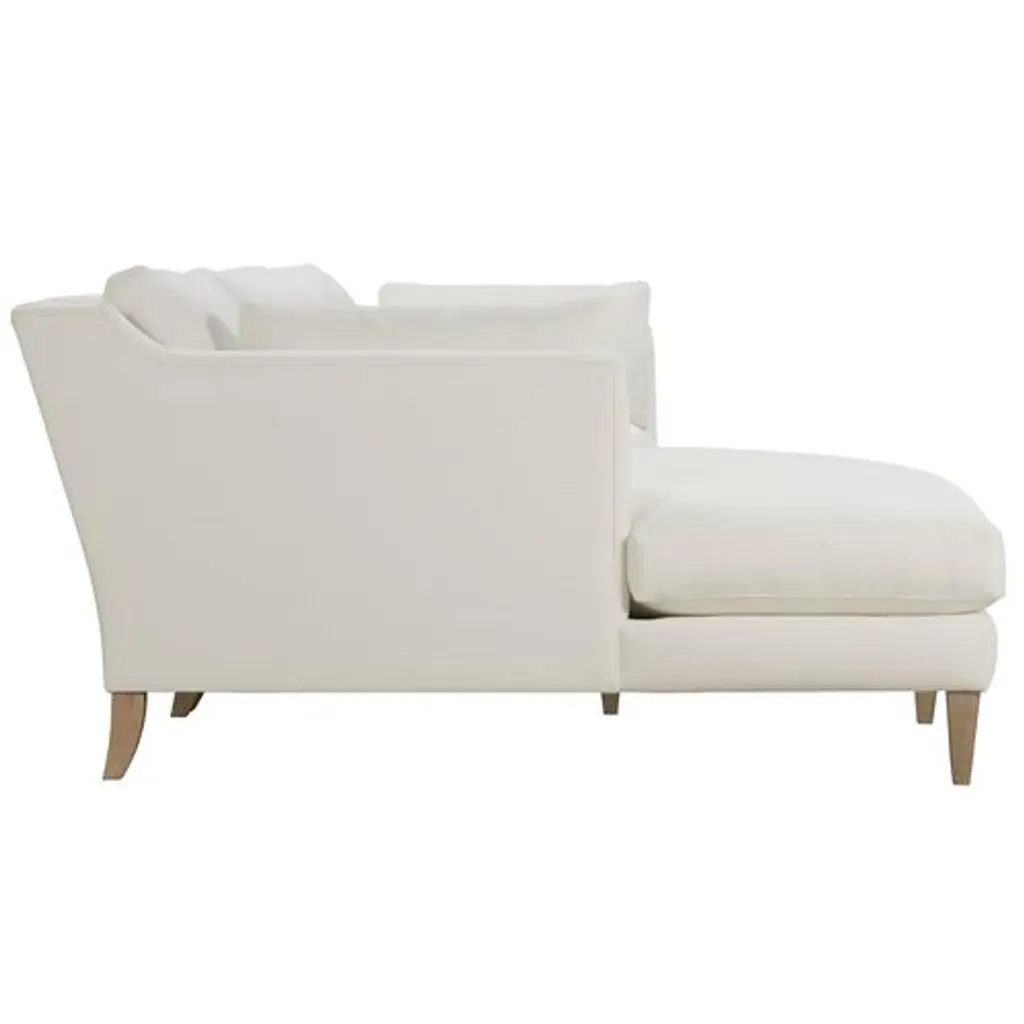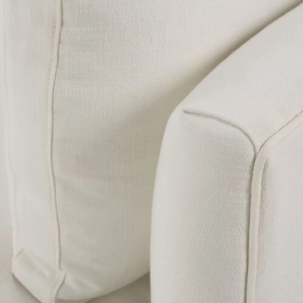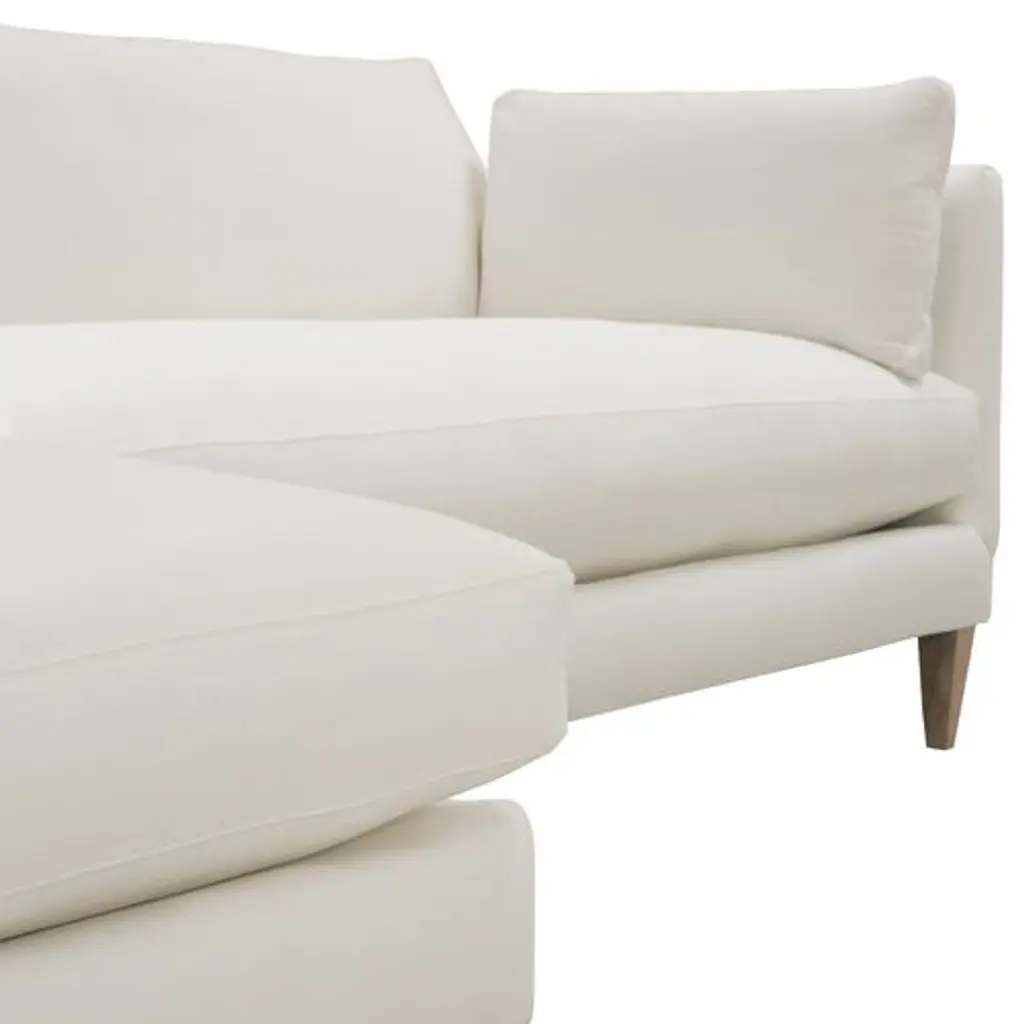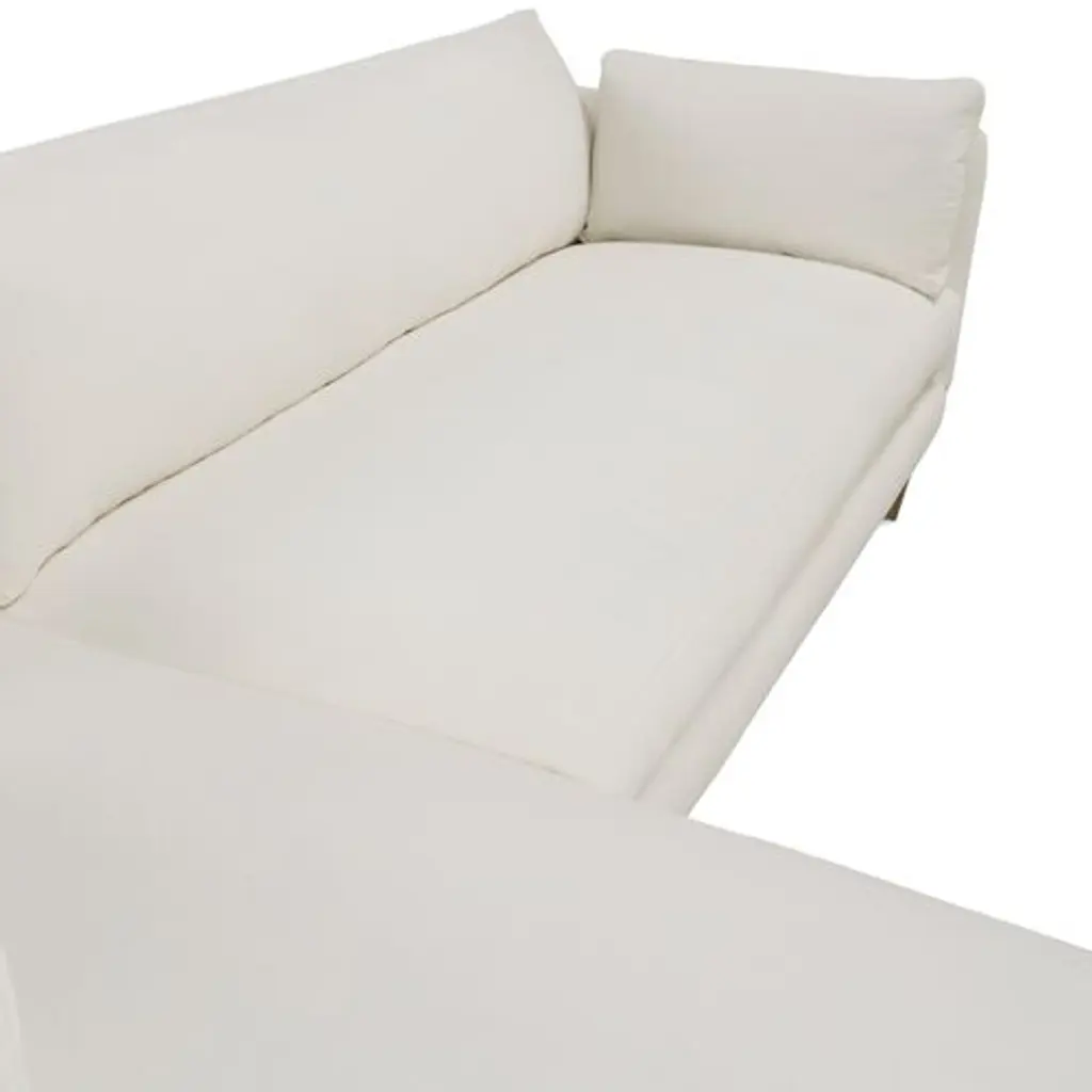 Designed by us and available only at One Kings Lane: This sectional's upholstery looks like linen, but it's washable, eco-friendly, and stain-resistant, making this a great choice for households with pets, kids, or spill-prone adults. Streamlined arms and tapered legs give it a fresh yet timeless appeal. The handcrafted, kiln-dried hardwood frame ensures that the sectional can withstand years of use, while the feather-and-down cushion fill provides long-lasting comfort.