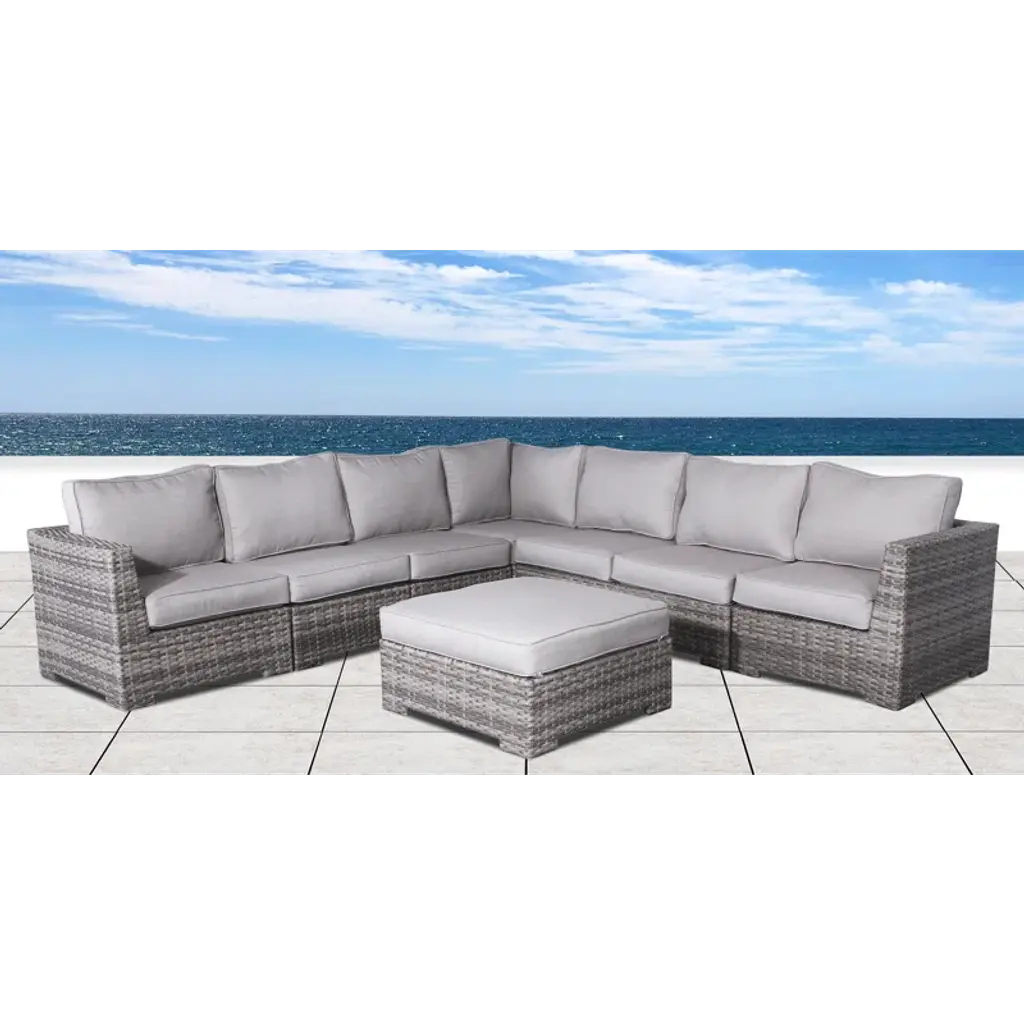 Turn any outdoor living space into your own slice of resort paradise with this modular sectional set, which includes one large sectional and one ottoman. Each piece is crafted with hand-woven weather-resistant wicker and a rust-proof aluminum frame, ensuring they're safe to sit outdoors. This set is topped off with 16 cushions, which are upholstered in marine-grade olefin fabric that's water-, fade-, and mildew-resistant. Best of all, no assembly is required for this set.